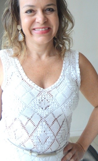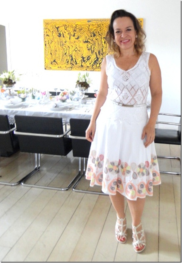 top artesanal do NORDESTE – saia TAHARI – sandália LOUIS VUITTON – BRINCO PD