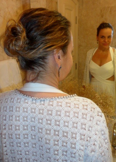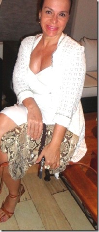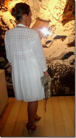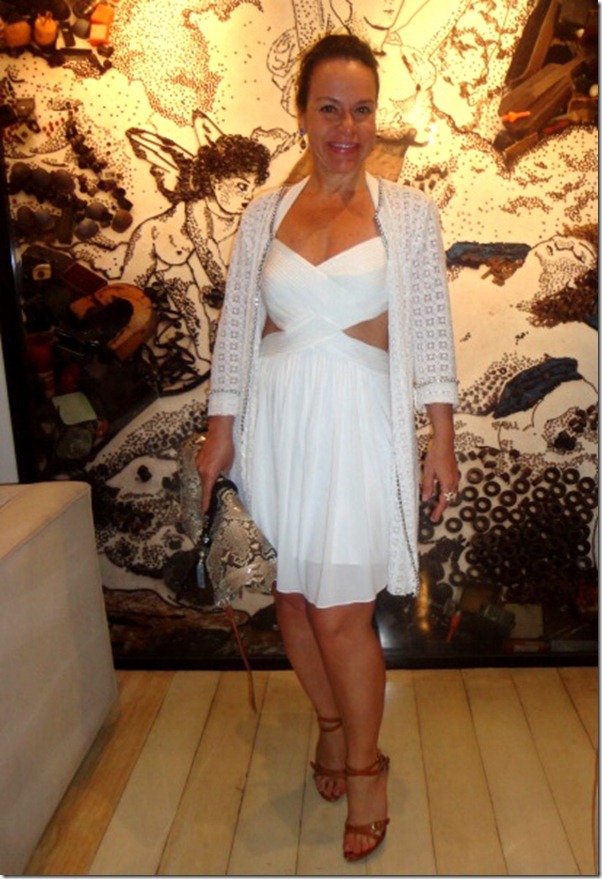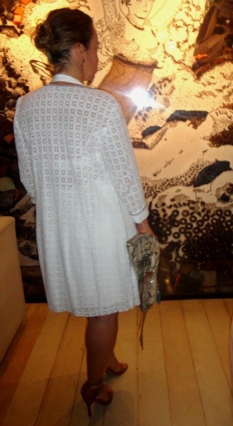 vestido branco com recortes BCBG – casaco de guipire MARES – bag PRADA – sandália nude FEGATA – JÓIAS PATRICIA DIAS ( apenas um brinco e um anel, coisa bem clean )