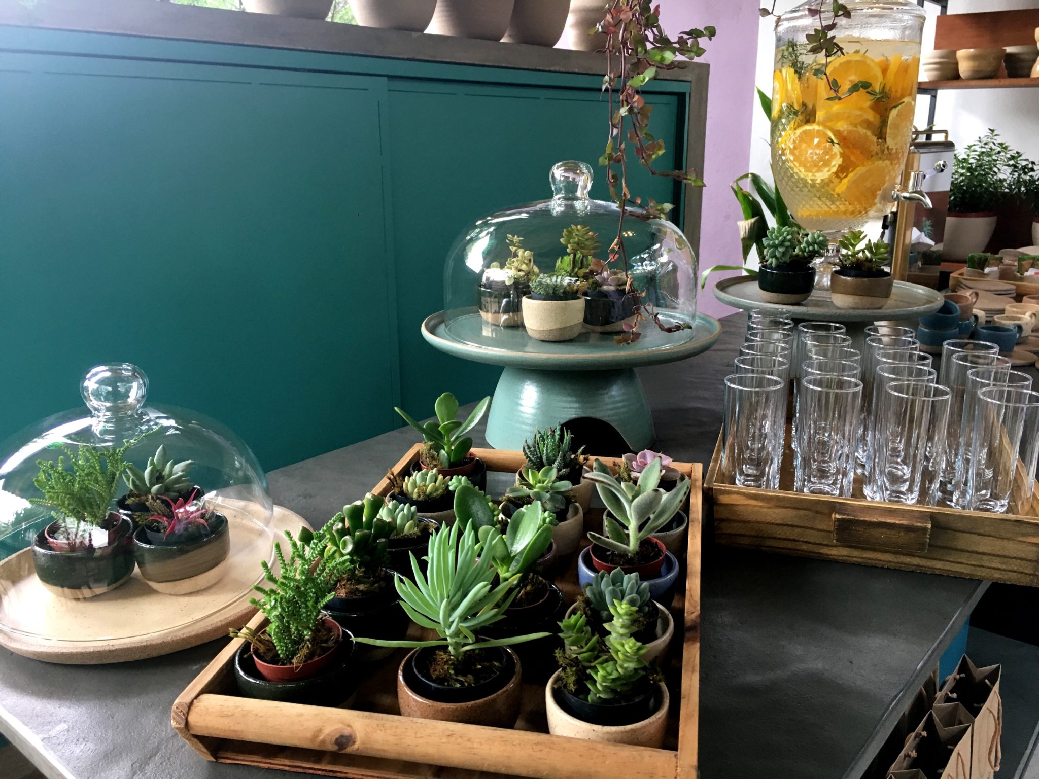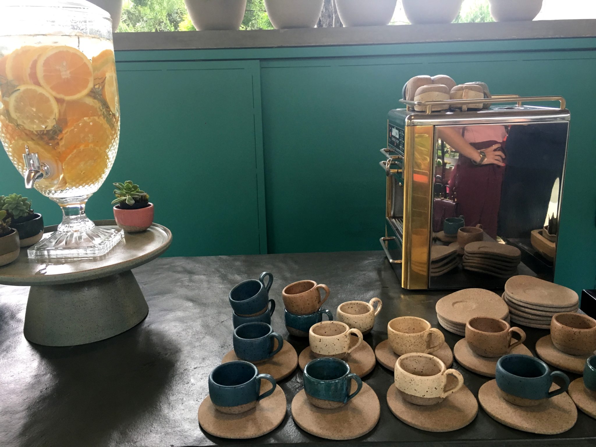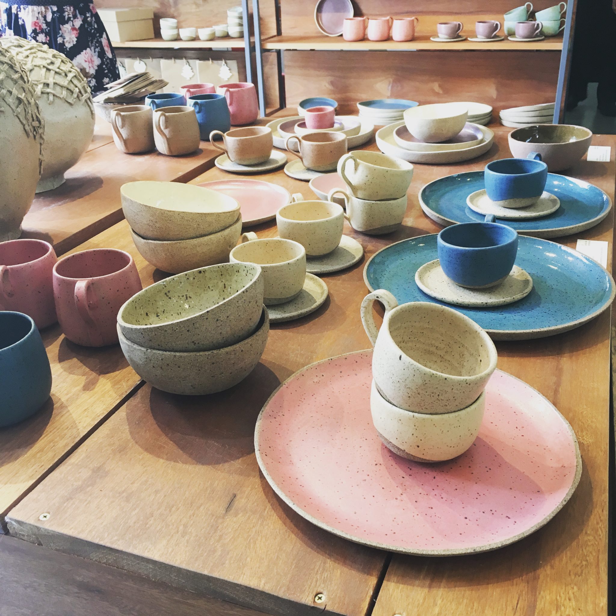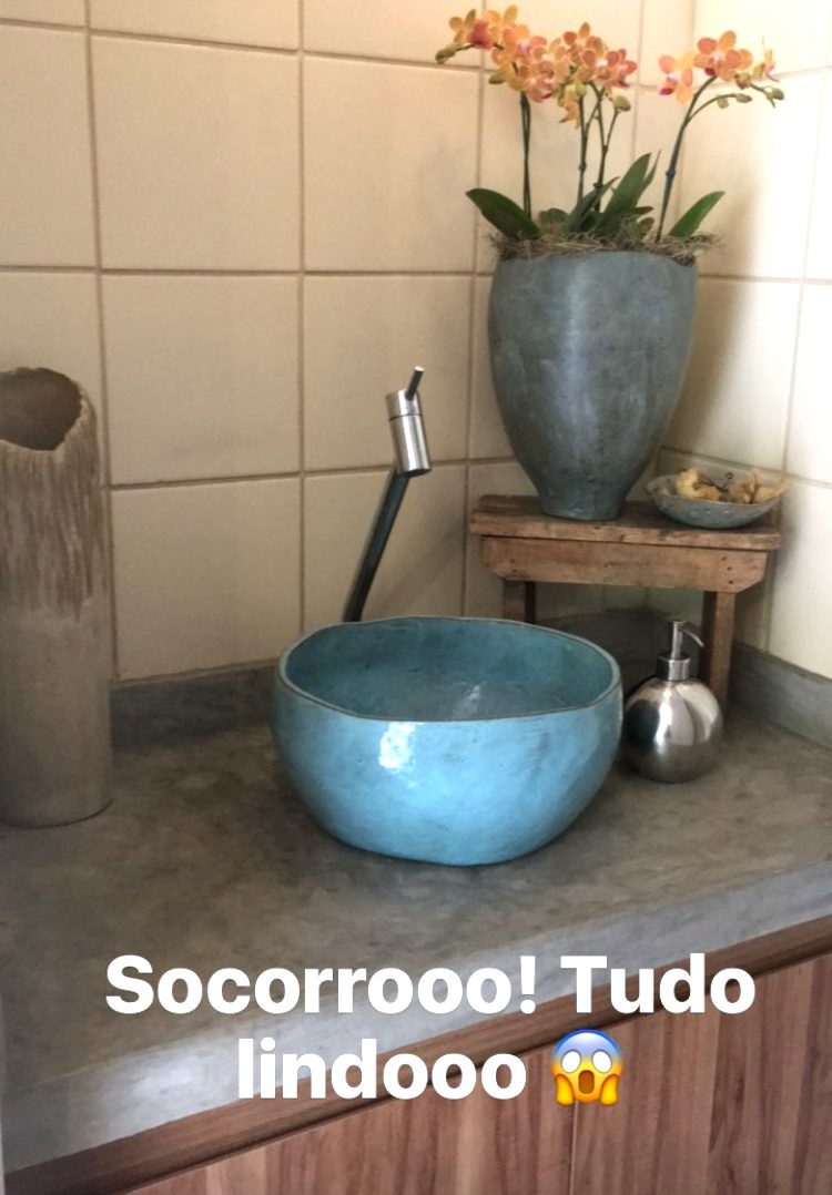 As cores são as mais lindas do mundo, assim como é o design das peças. A fábrica funciona em uma antiga floricultura, então todo o espaço é lindamente integrado à natureza. Foi nesse “paraíso Heaven on Earth” que fomos recebidos pela família e pela Natália. Repare nas delicadezas e na oportunidade de ver a cerâmica sendo usada literalmente no dia-a-dia.