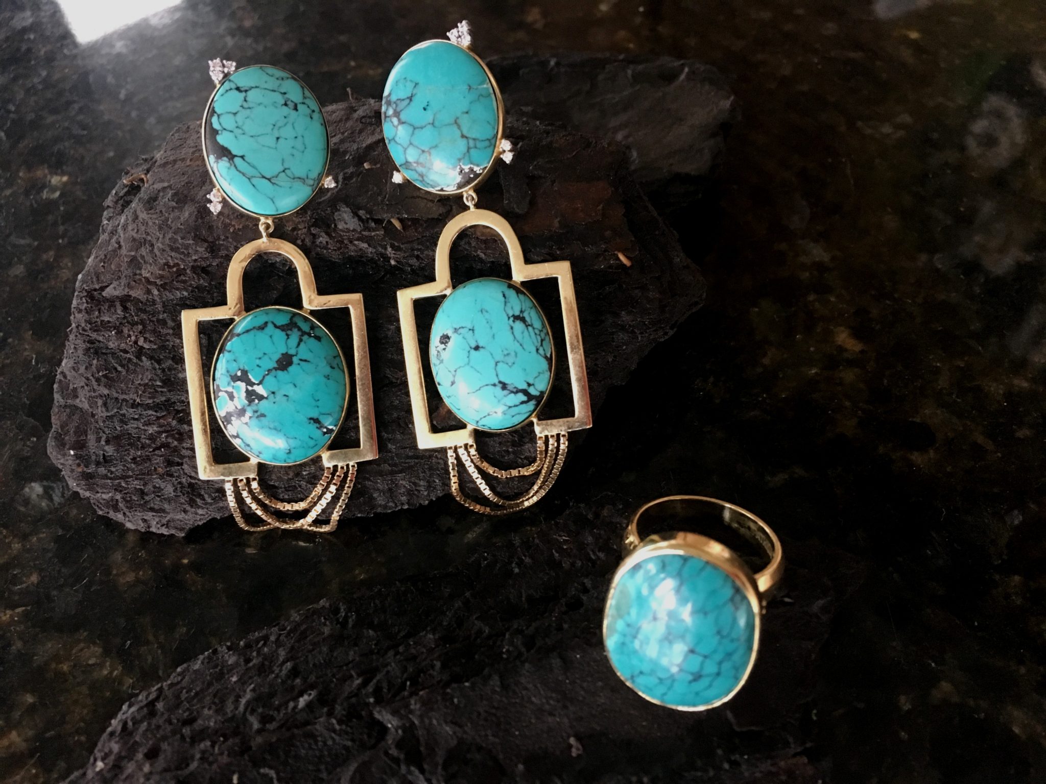 Peças exclusivas PD | Brinco de Turquesa | 10 x R$550,00 | Anel 10 x R$ 310,00 | Para ser seu: 31 99955-5410