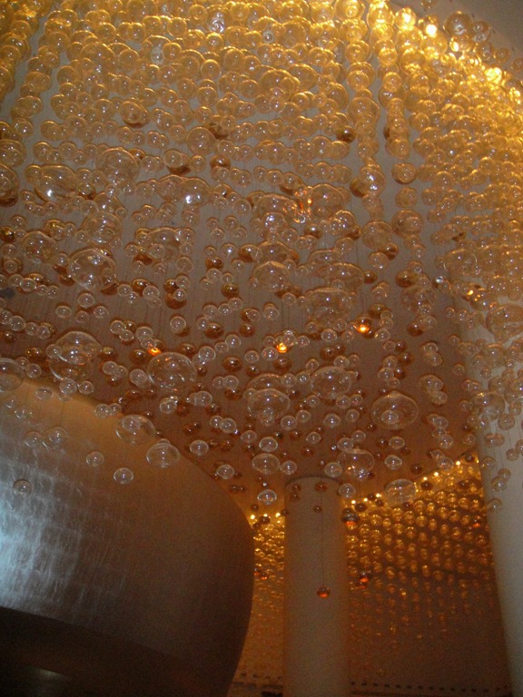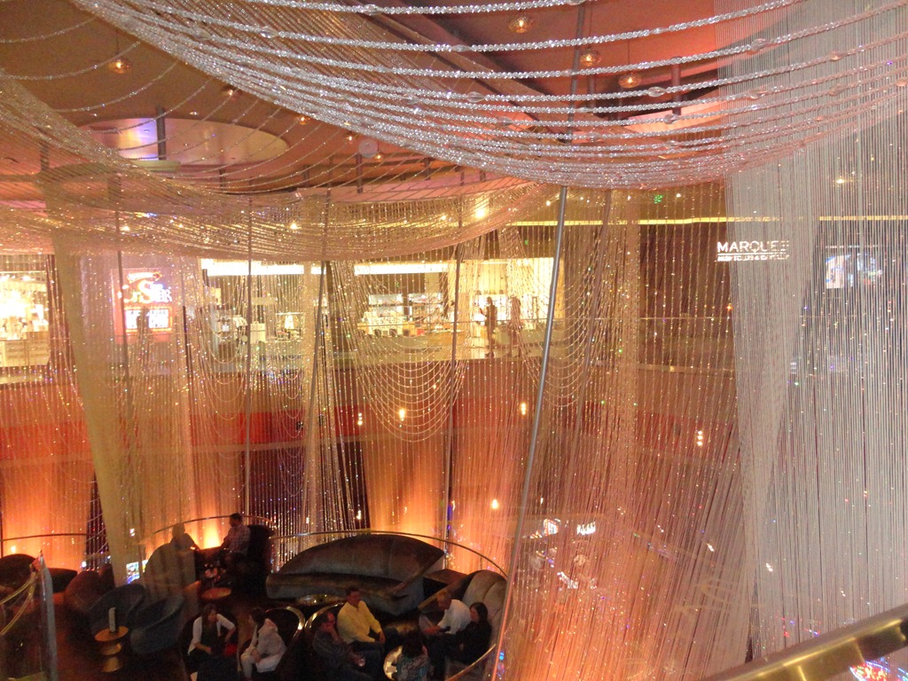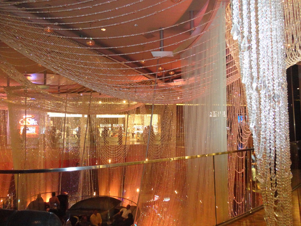 Esse é o bar do hotel – CHANDELLIER – uma coisa de lindo esse efeito! Você se sente dentro de um lustre, pois as cortinas vão do teto (altíssimo!!! ) ao chão .