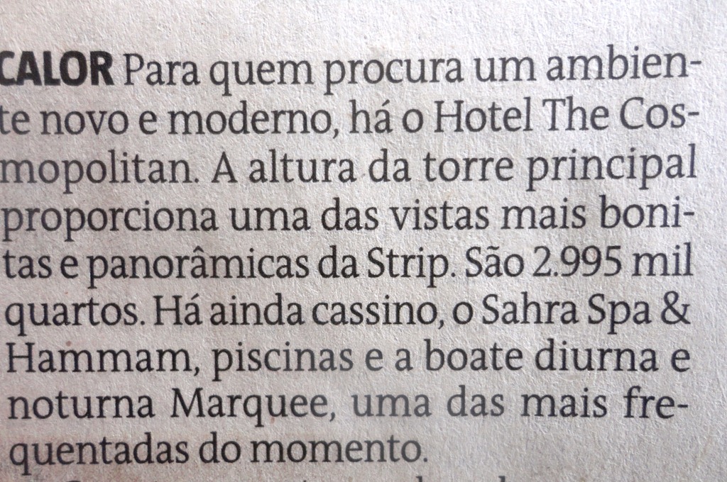 O point da vez é o HOTEL COSMOPOLITAN. Super novo e com opções suuuper legais !
