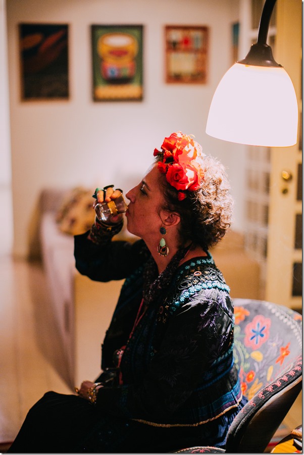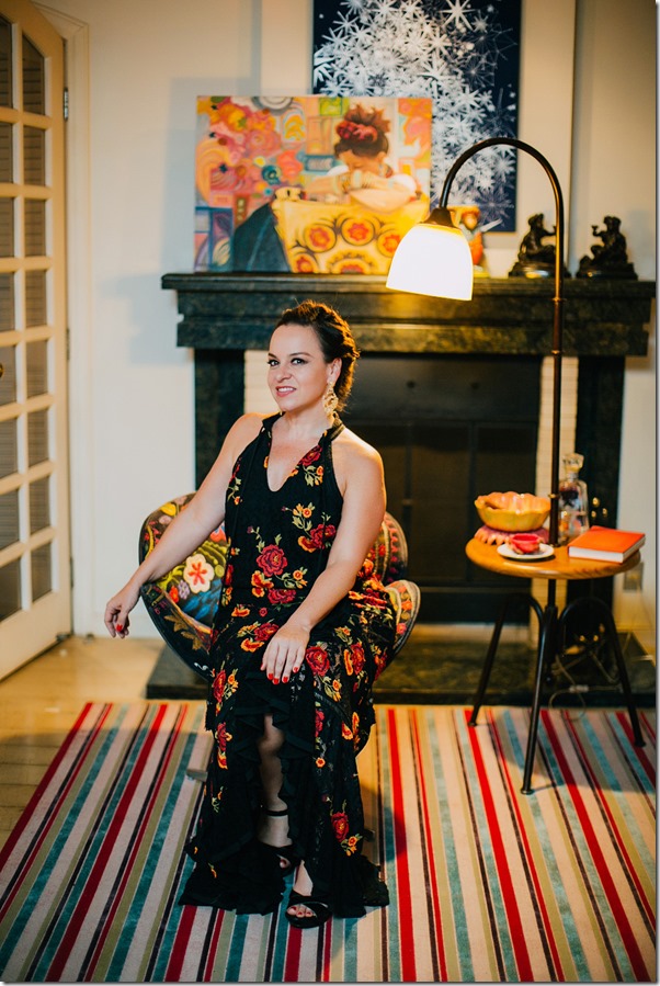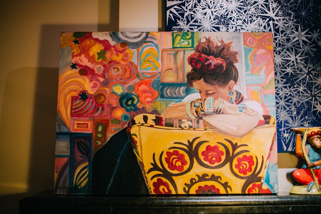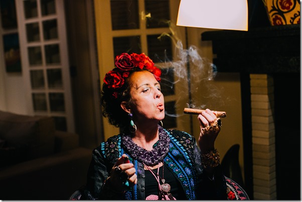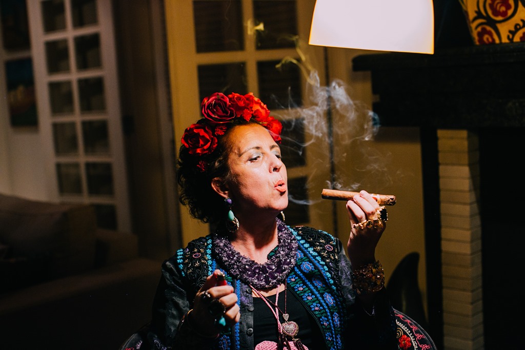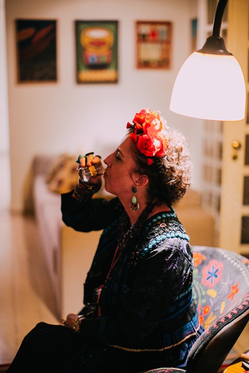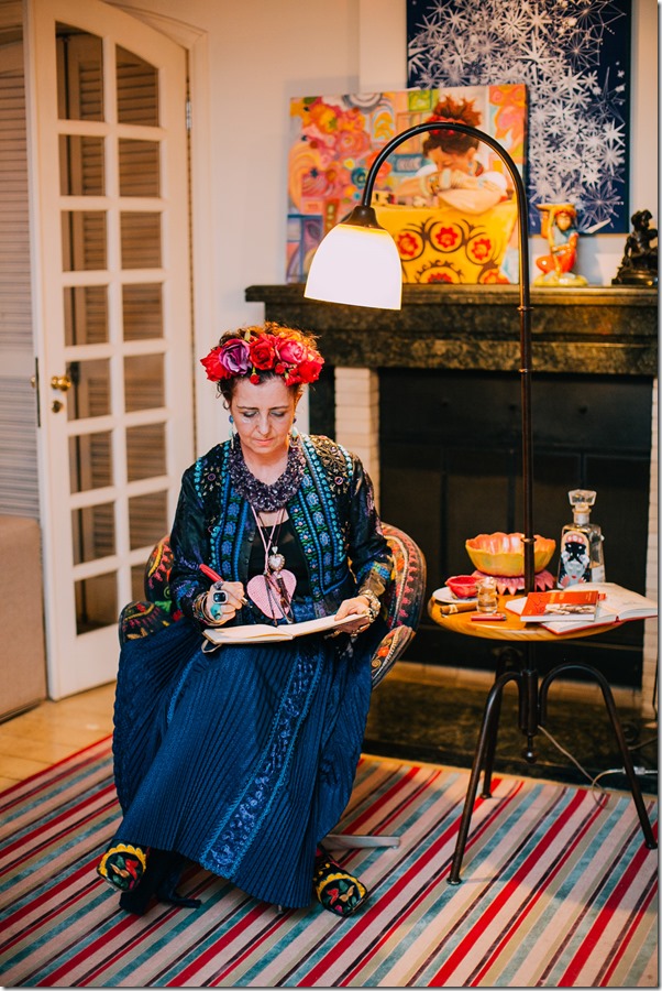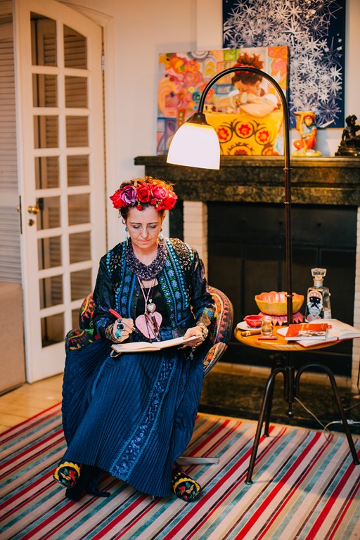 Agnes Farkasvolgyi é uma chef de 1a. ( leia-se Bouquet Garni ), mas também aventura-se com muita competência pelo mundo da arte. Além das telas incríveis, faz performances artísticas que encantam. Nesse evento FRIDA, a certo momento, ela assentou-se nesse cantinho “ temático “ …