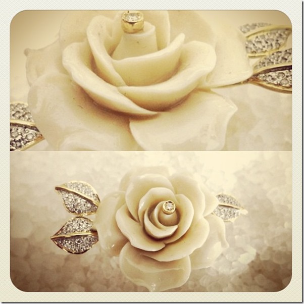 brinco de rosas com brilhantes —— 10 x 200,00 = 2000,00