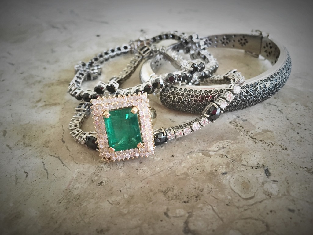 clutch VALENTINO com JÓIAS PD em brilhantes e esmeraldas