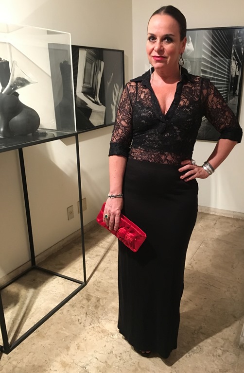 Ainda na série ALL BLACK, mas dessa vez com um toque de vermelho na clutch e batom.