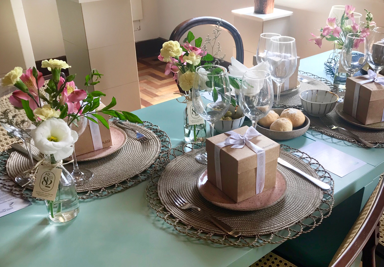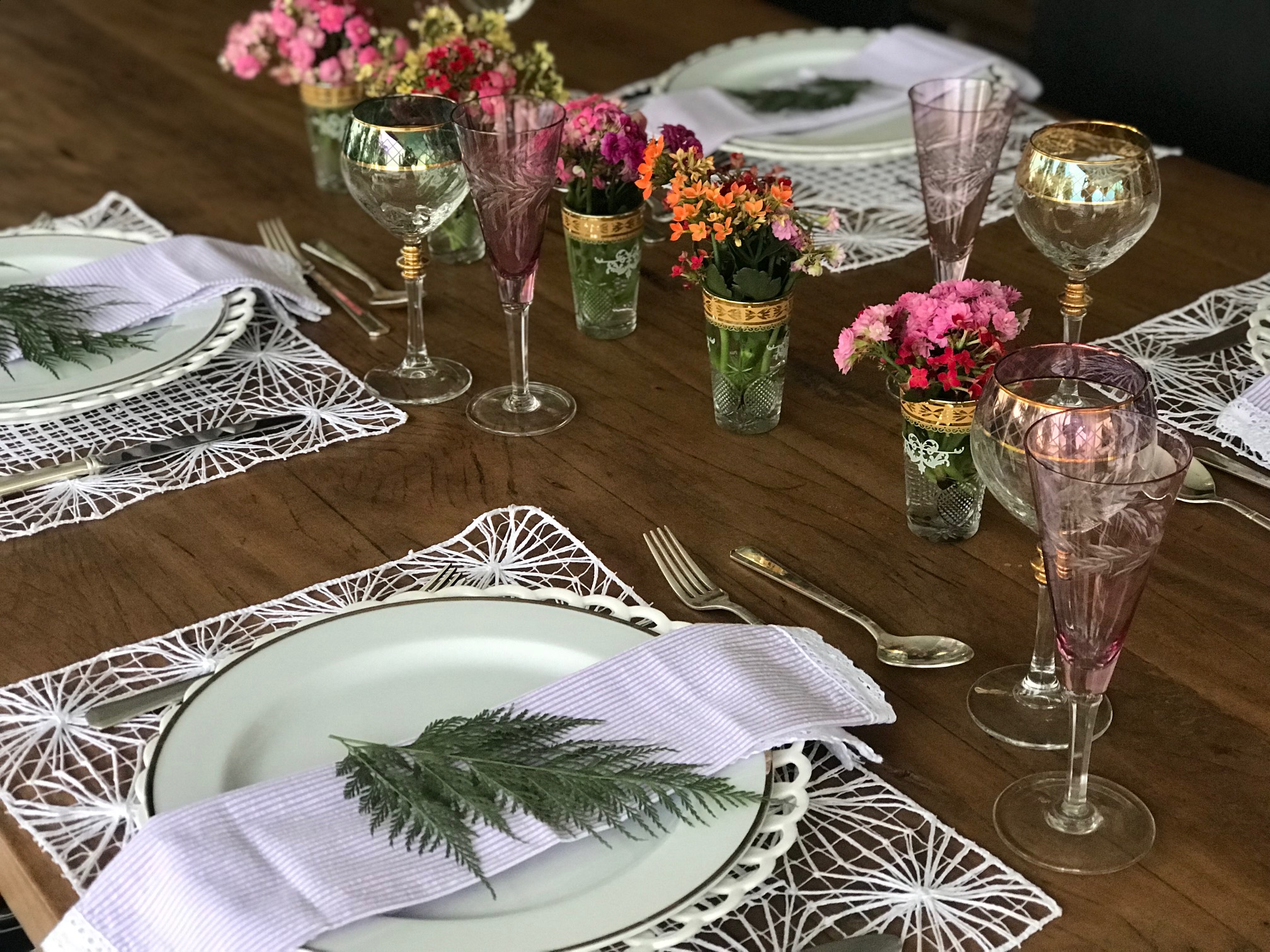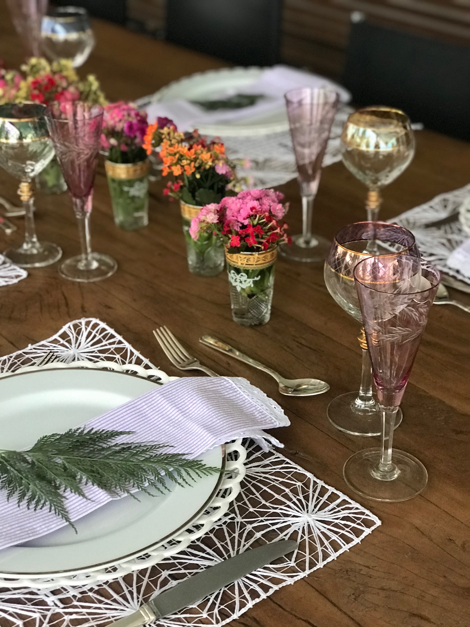 Exatamente dois dias depois desse almoço, recebi um casal em casa de improviso, mas quis passar essa mesma aura de leveza nessa mesa que montei a jato.