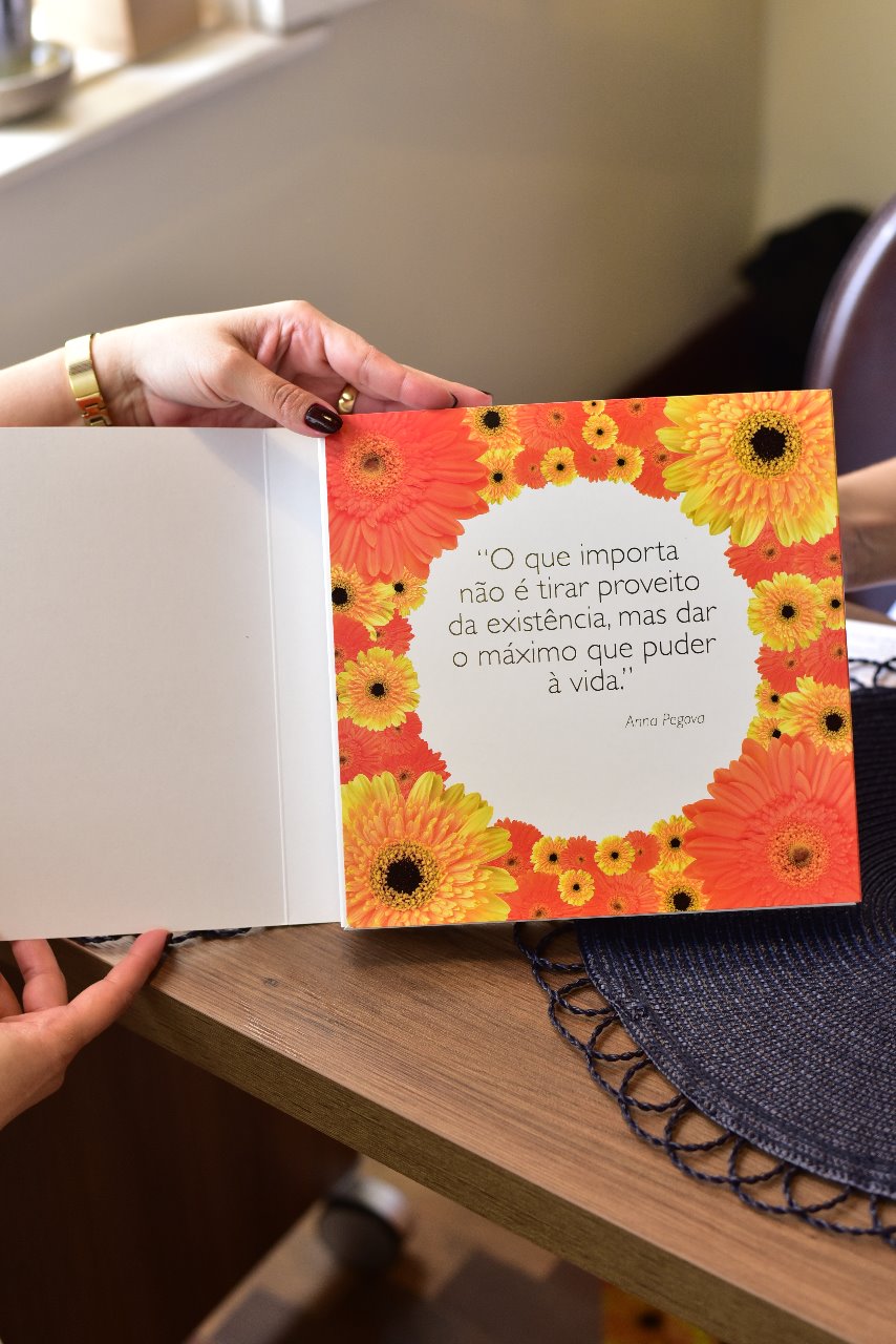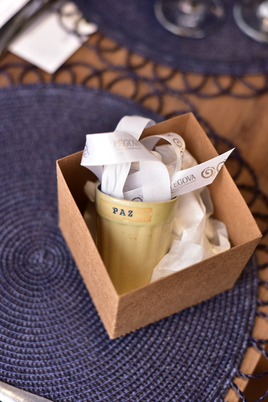 Dentro de cada caixinha dessa tinha um mimo para cada um dos presentes. Os copos de cerâmica da @SOISPLATO traziam , cada um deles,uma palavra diferente: PAZ, AMOR e CORAGEM. Cada pessoa, ao abrir a sua, dava um abraço na pessoa ao lado e desejava a palavra que recebeu. Tem coisa mais afetuosa do que receber um abraço e uma palavra certa?