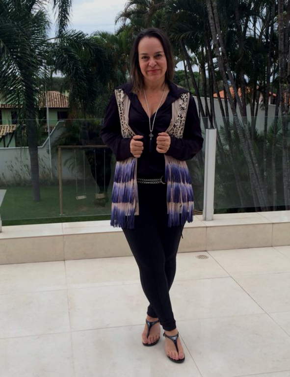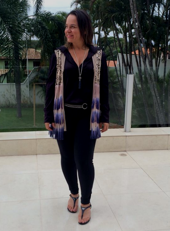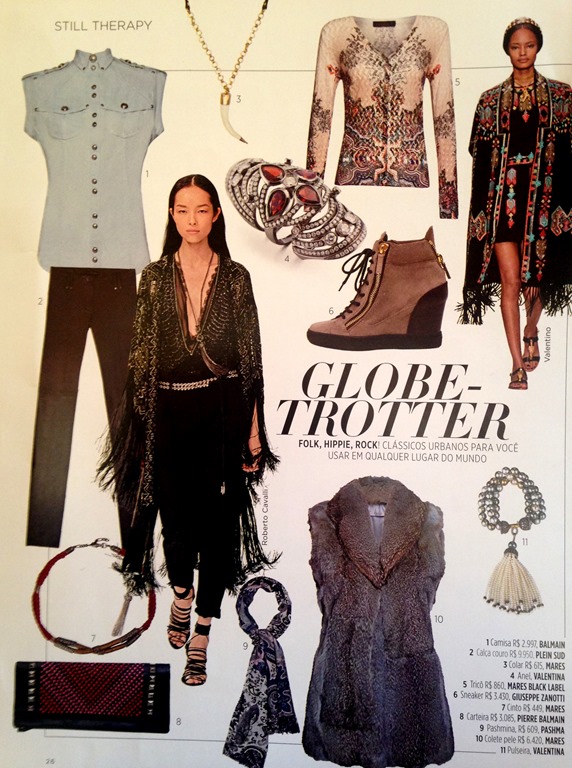 Para receber chez moi , um look cool and relax, inspirado na tendência globe-trotter da Revista MARES . O colete de franjas, inclusive, é MARES M GUIA.