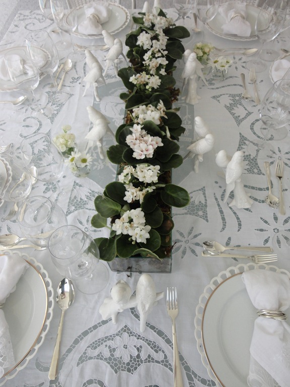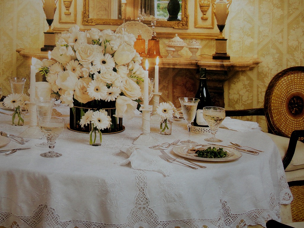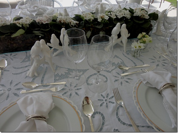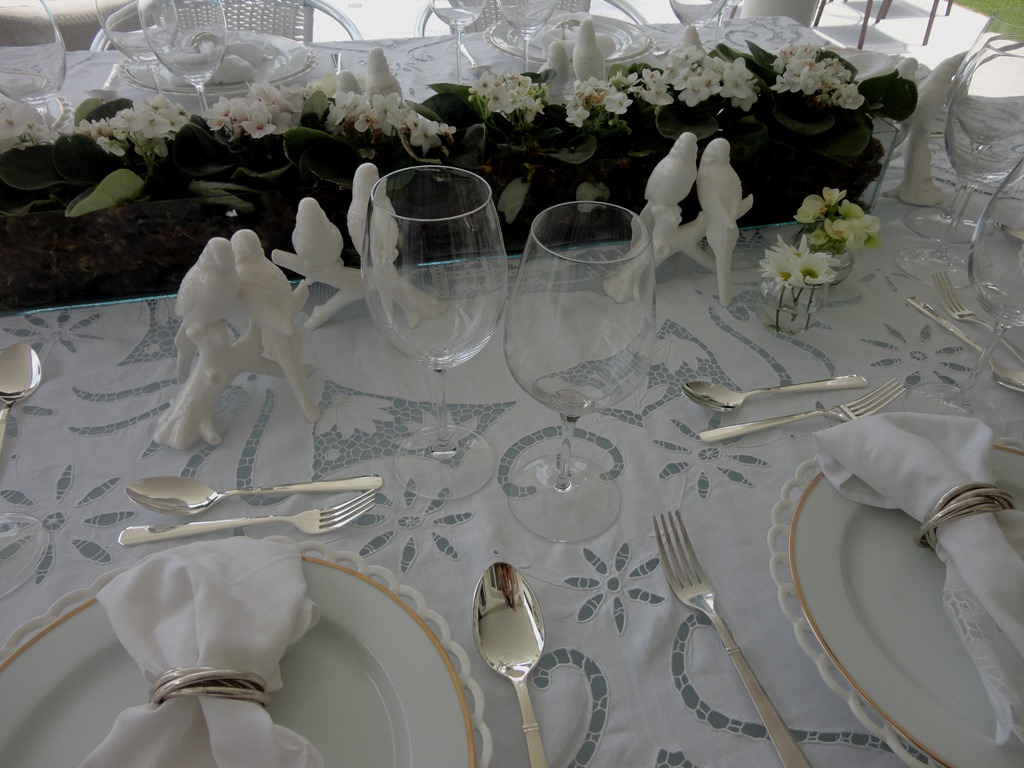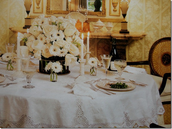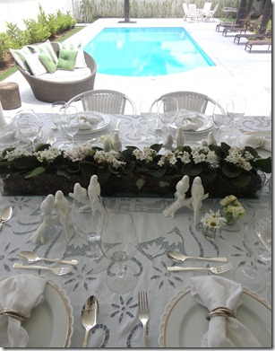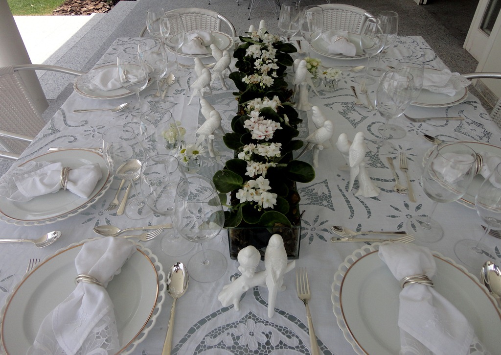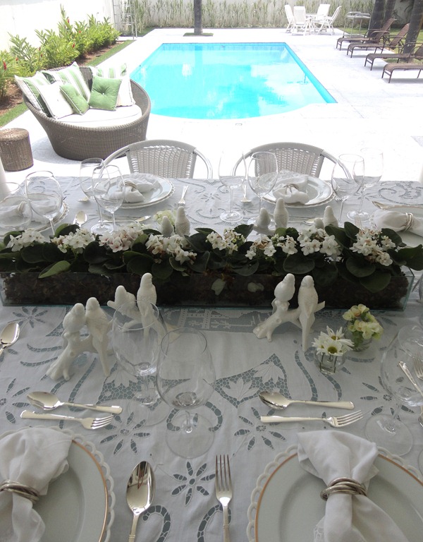 Com o dia lindo que fez na 6a passada, resolvi de última hora convidar 2 casais de amigos para um prato único sem complicação. As flores foram as mesmas que já estavam em casa na semana, e como eram brancas, montei uma mesa “ all white” ! A imagem abaixo é da Architectural Digest da minha pastinha de inspirações. Sempre gosto de partir de uma idéia que me agradou antes, tanto para não me perder, quanto para ser rápida !