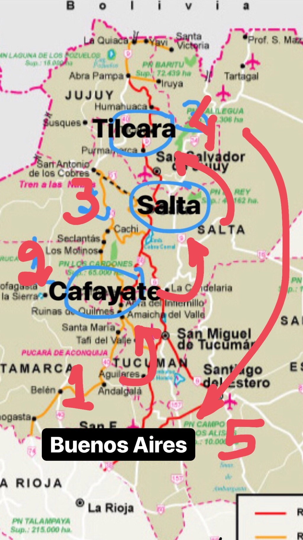 Comecei com 3 noites em Buenos Aires, mas fiquei em PALERMO , para conhecer e aproveitar bem essa região mais decoladinha de lá . Depois foram duas noites nos vinhedos de CAFAYATE , depois mais duas na histórica SALTA e depois mais duas no deserto em JUJUY .