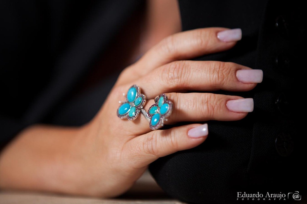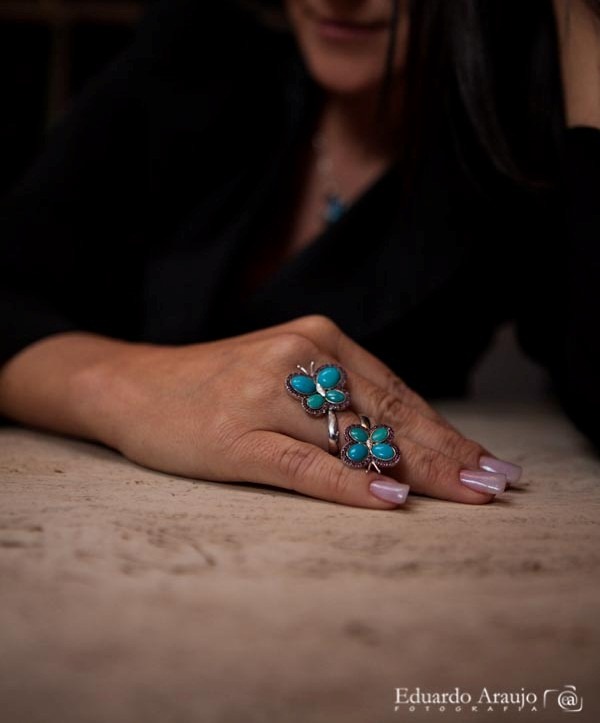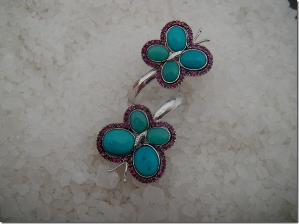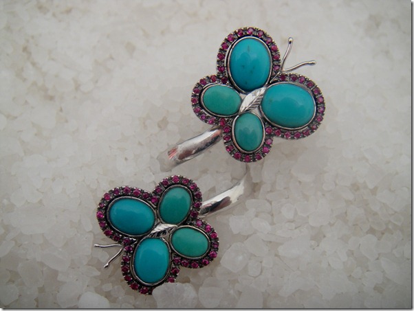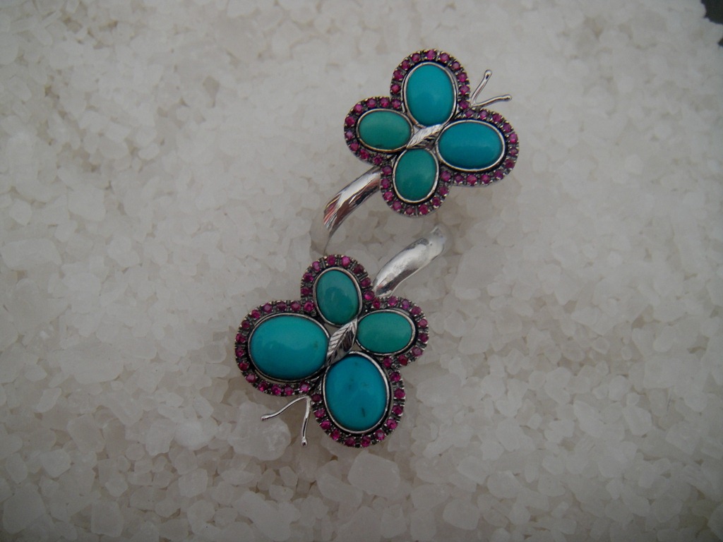 Anel de borboletas duplo de turquesas com rubis ———- 10 x 480,00 = 4800,00