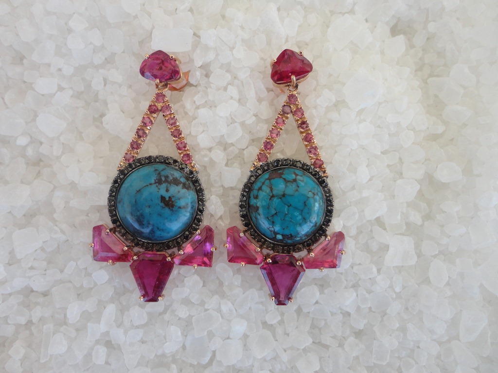 … que fica lindo também com esse brinco com brilhantes negros e turmalinas rosa!