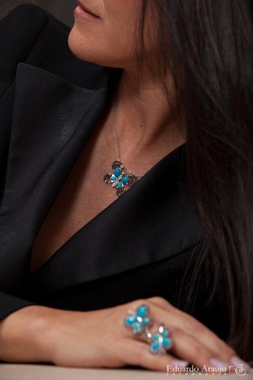 colar borboleta de turquesas com brilhantes negros —– 10 x 400,00 = 4000,00