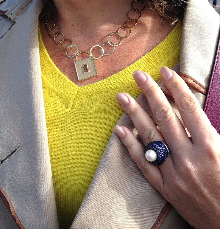 cashmere BLOOMINGNDALES – trench BURBERRY – bag MULBERRY – calça de brocado e coturnos acervo – chapéu H&M – JÓIAS PD