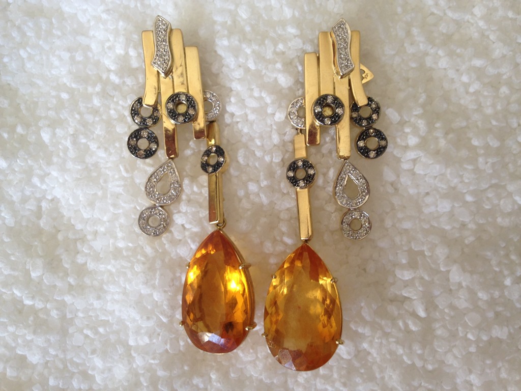 Combinei jóias em ouro amarelo e citrine no look , sendo que o brinco tem a gota removível que pode colocada e retirada dele dependendo da vontade de usá-la ou não.