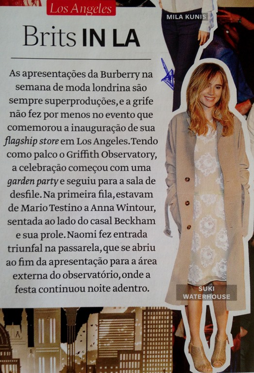 O look veio inspirado em gente que foi ao desfile da Burberry – achei lindo – vi na Vogue!