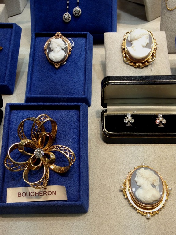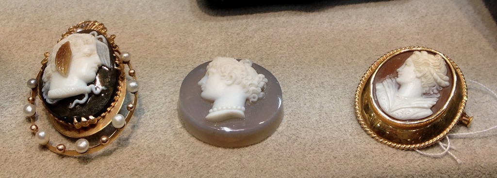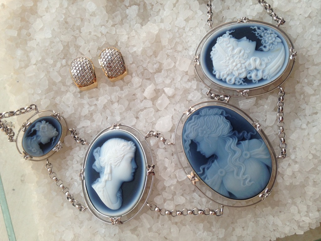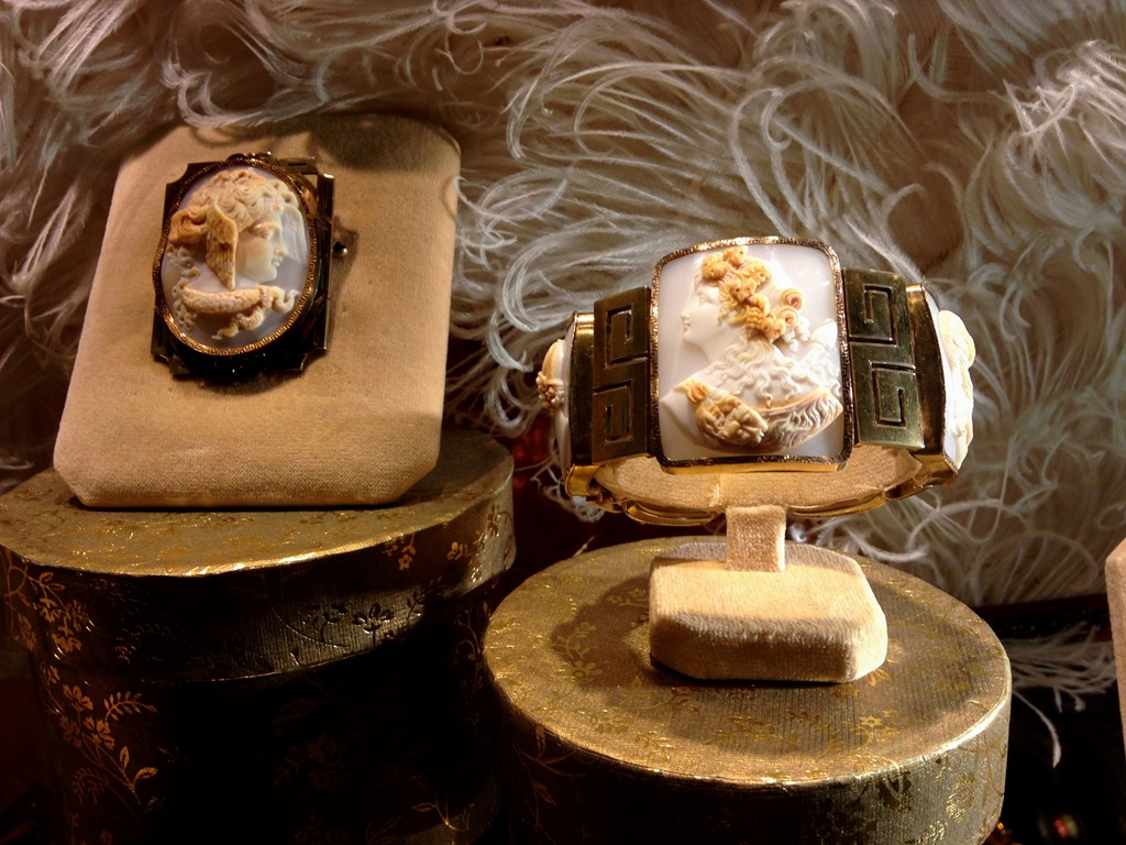 O colar não fez feio frente `as maravilhas expostas, e os camafeus são destaque entre as peças mais deslumbrantes à venda, em montagens inspiradoras. Veja só:
