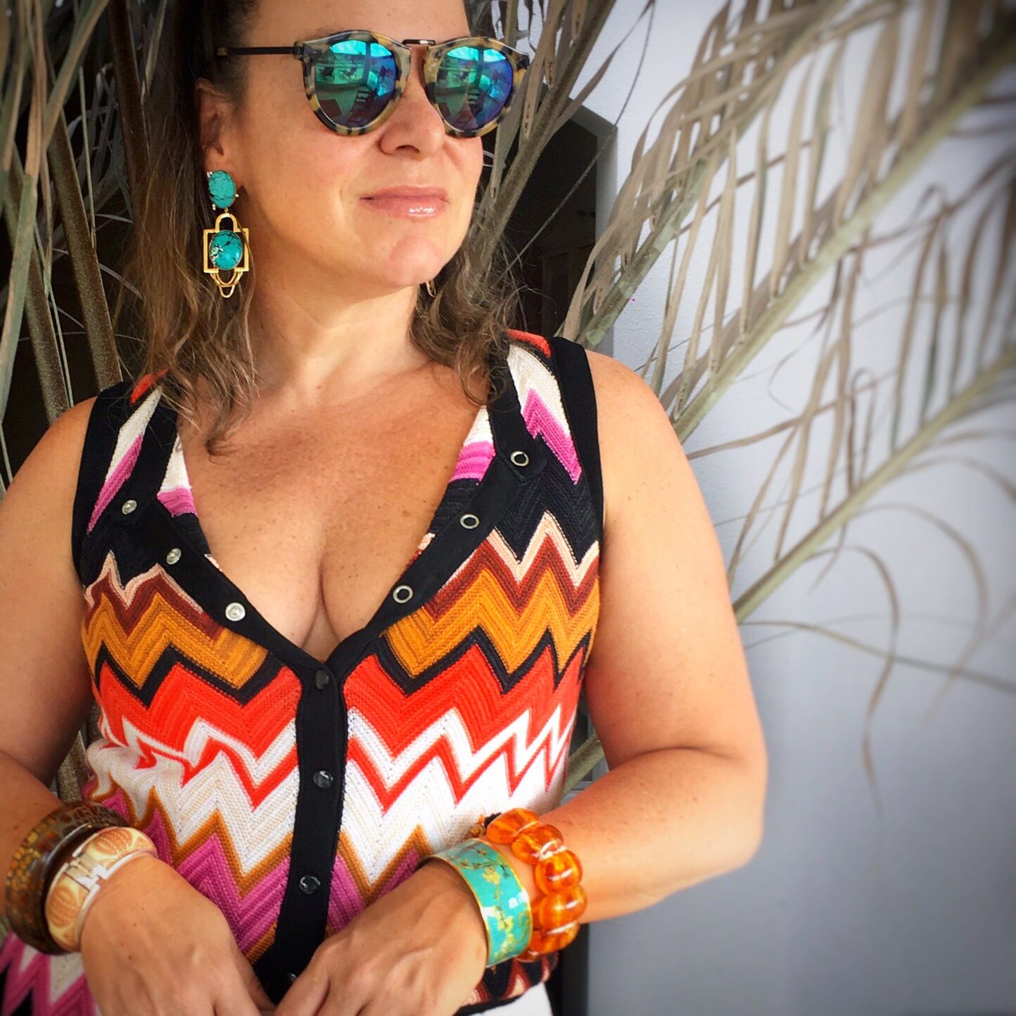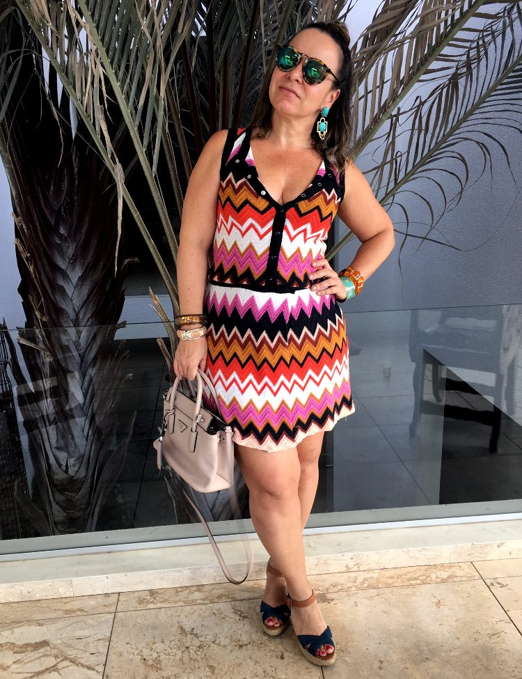 De novo, as mesmas pulseiras, o mesmo brinco e outro look colorido de verão.