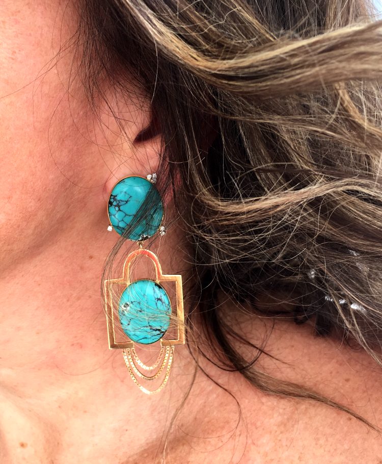 Penso igual à Nina. Nessa semana de calor de alto verão, introduzi ainda mais 2 pulseiras no kit ( uma da Colômbia e outra de resina imitando pó de ouro de alguma H&M mundo afora – adoro! ) e mantive o mesmo brinco de turquesa. É bacana usar essas coisas que você coleciona durante a vida! Peças de viagem, além de serem sempre lindas e diferentes, ainda carregam elementos emocionais que nos deixam felizes sempre que as usamos. O verão pede! E os looks agradecem! A gente usa as mesmas roupas de sempre com uma nova cara, trocando apenas os acessórios!