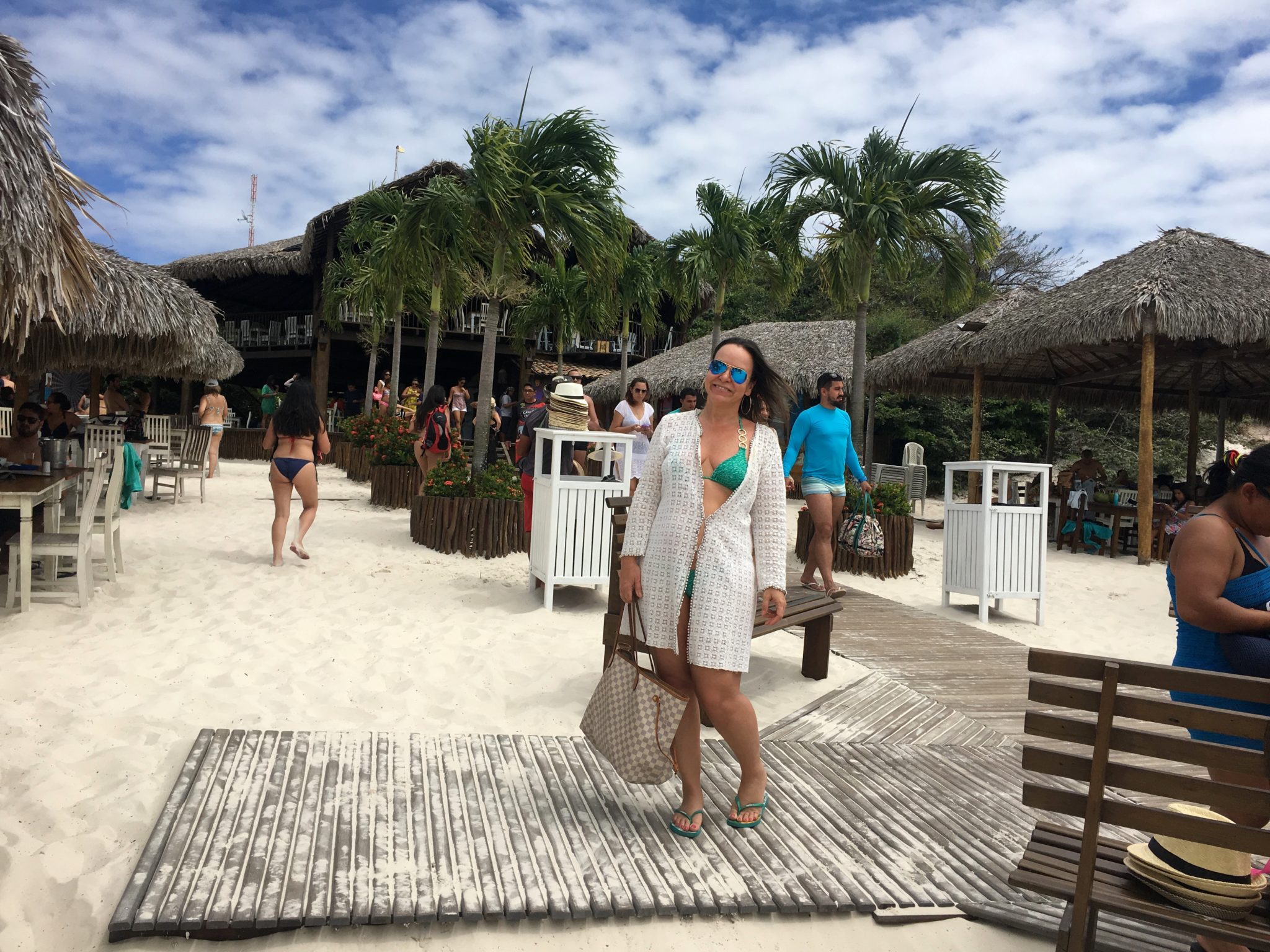 A mesma saia virou look praia depois … e depois voltou a sair de noite com outras joias.