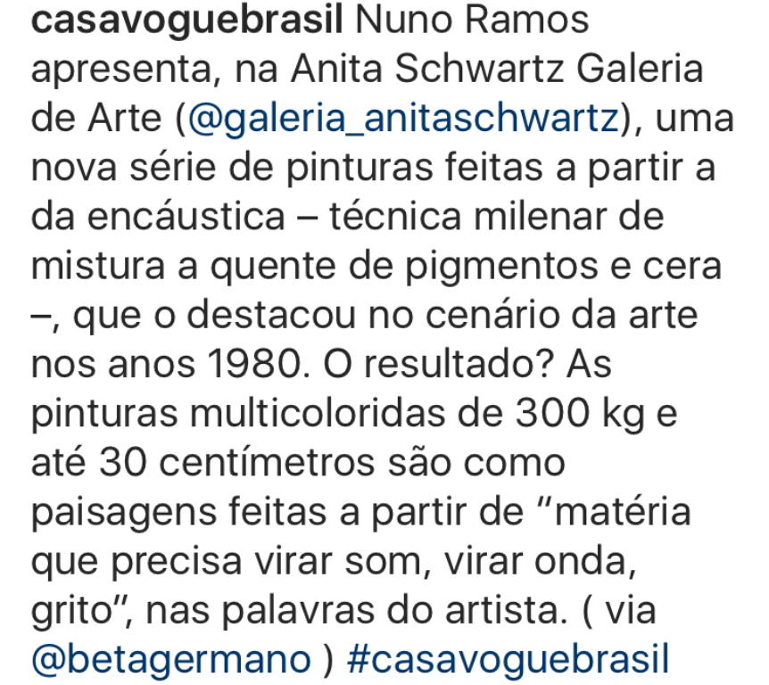 Fui também ver NUNO RAMOS na GALERIA ANITA SCHWARTZ . Um dos grandes da geração 80.