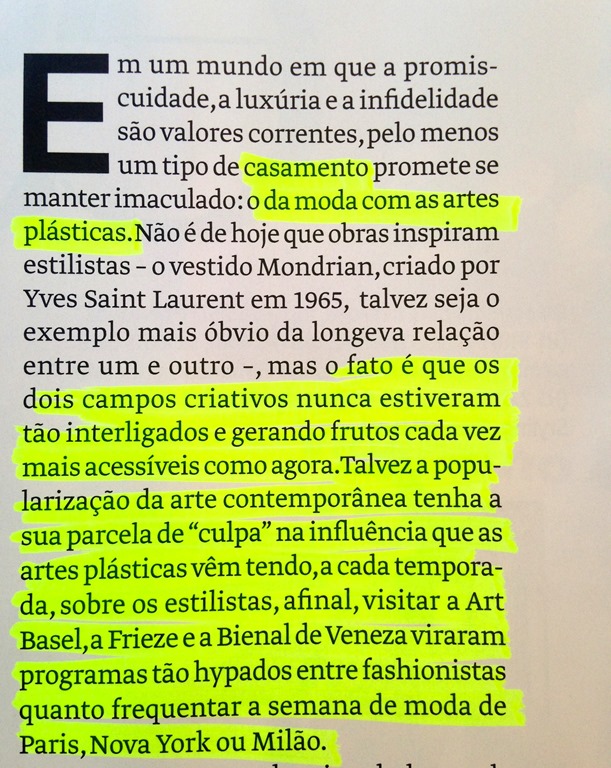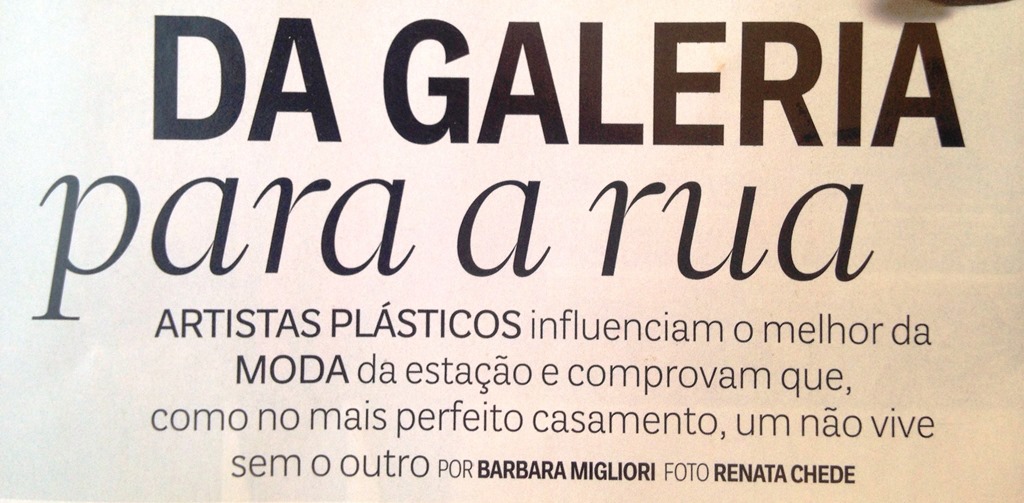 Matéria super bacana da VOGUE BRASIL SET/14 , linkando moda e arte. Vale a pena ler!