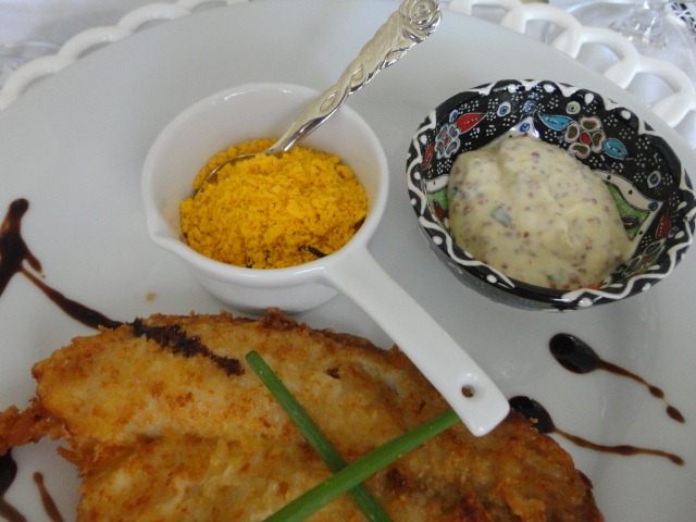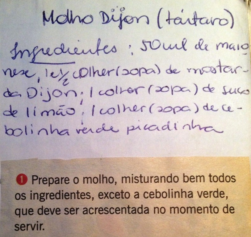 Esse peixe ( a nossa tilápia brazuca !! ) foi empanado como ensina Pedro Frade em seu blog, o que faz toda a diferença ! Aliás,ele ensina empanar o frango (que já fiz também e ficou ótimo! ) …mas no peixinho…hummmm … fica delicia!!!! O molho tártaro está abaixo :