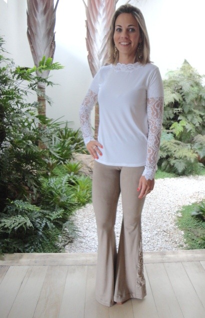 Adriana, em look CAPADOSSI – peças produzidas exclusivamente para a loja agora –