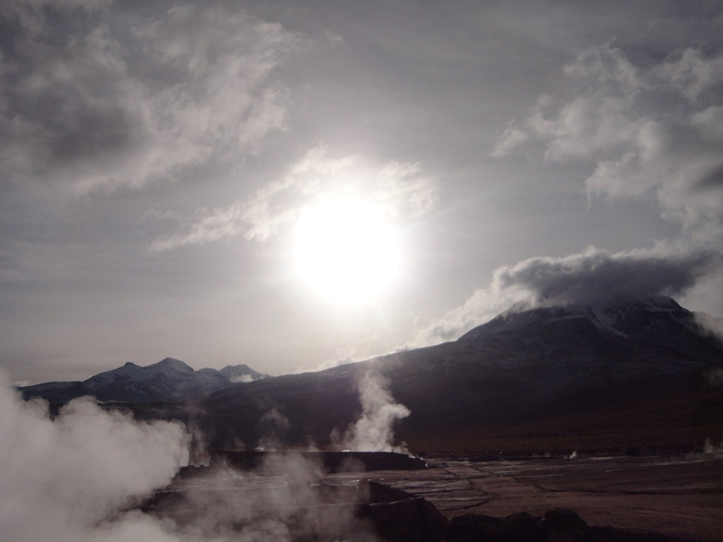O nascer do sol em meio aos geisers , aos pés dos Andes cobertos de neve. Surreal !