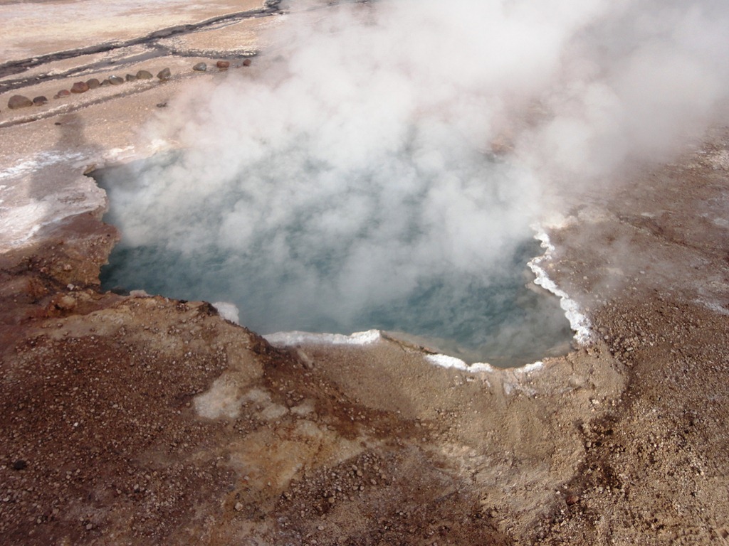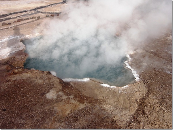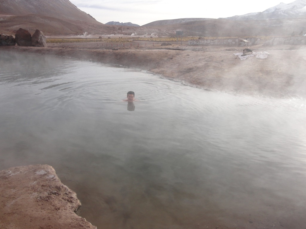 Nesta hora, a temperatura já subiu ( –2 graus!!! ), e pode-se mergulhar na única piscina natural geotérmica(35o) do parque, que aliás é o 2o. maior campo de geisers do mundo!!!!