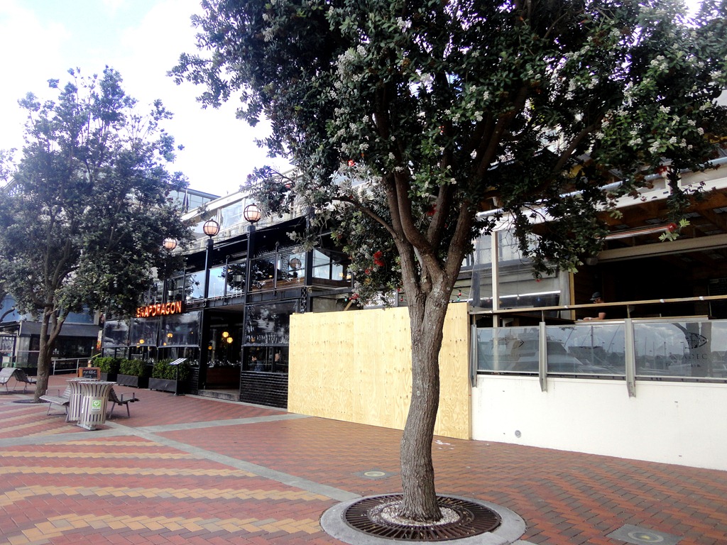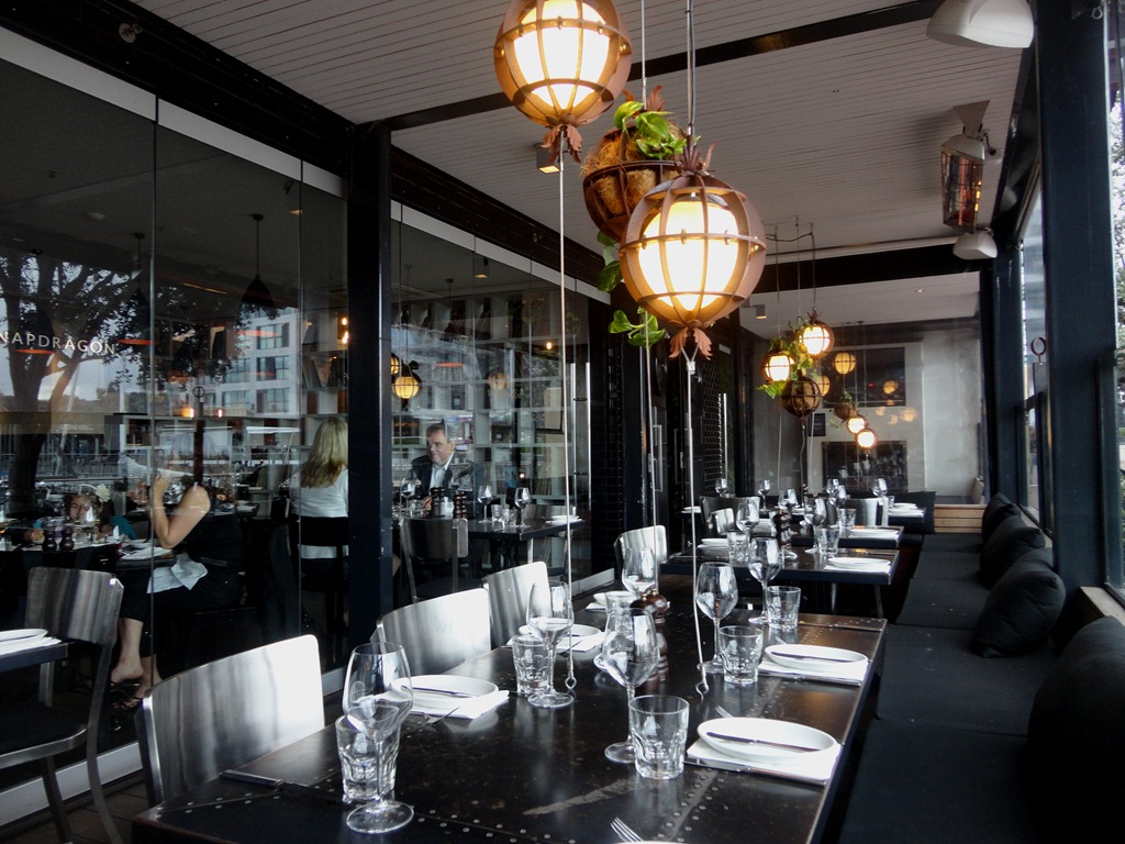 A área de restaurantes se chama WYNYARD, e fica junto ao porto e à marina.