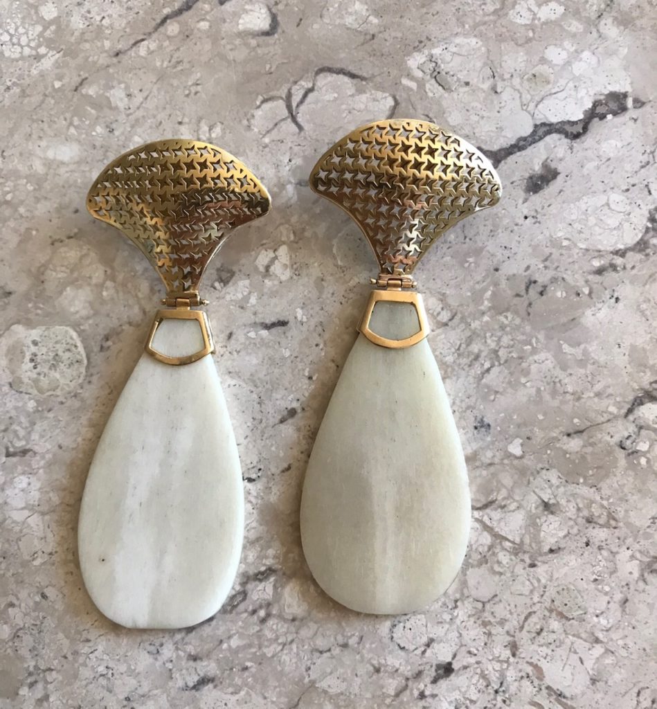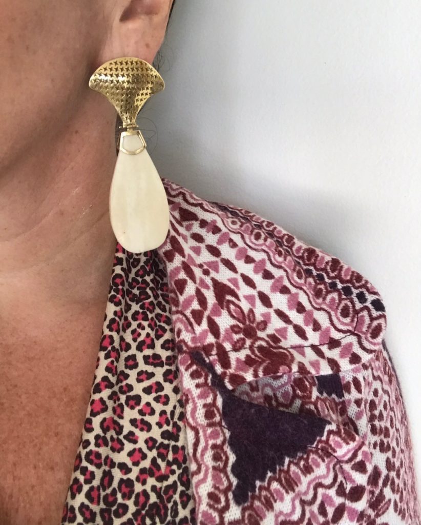 A criatividade pode também levar você a novas ideias e possibilidades. Esse brinco, por exemplo, além de ser uma joia, carrega uma mensagem de sustentabilidade. O ouro foi o suporte de uma matéria-prima pouco usual: o osso. Comprei essas peças certa vez na Bahia e fui montando peças aos poucos. Aliás, gosto de interferir na madeira, em objetos antigos, em outras propostas inusitadas fora do lugar comum.