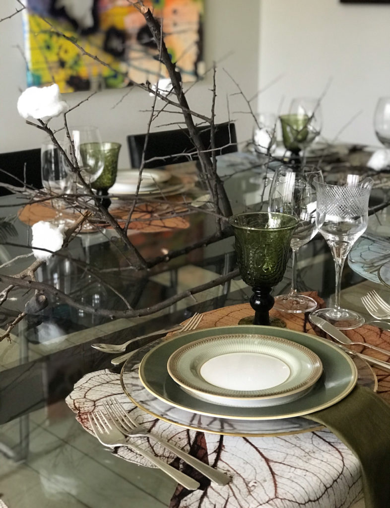 Já falei em como colocar o verde em casa – veja AQUI . Agora vou mostrar o conceito BIOFILIA na mesa que fiz na semana passada.