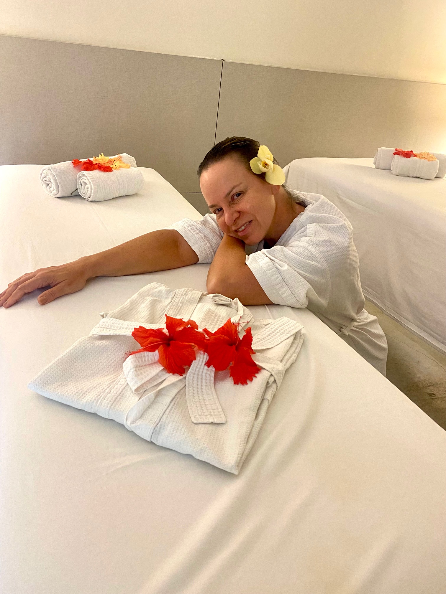 Depois de um dia de praia, nada igual a um banho de banheira e uma massagem na própria pousada.