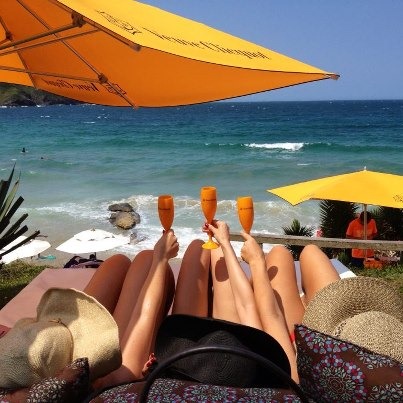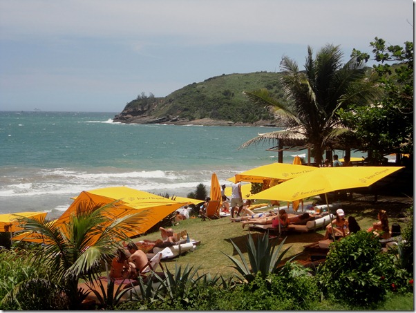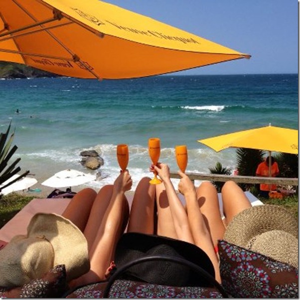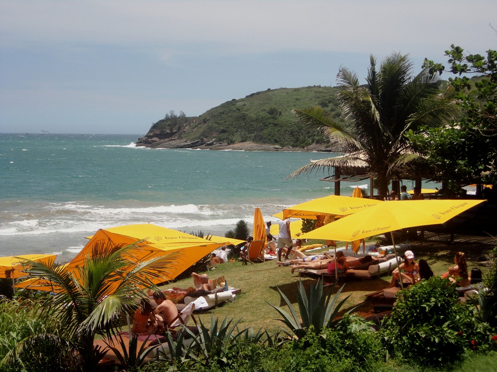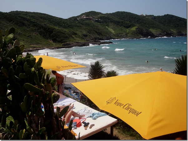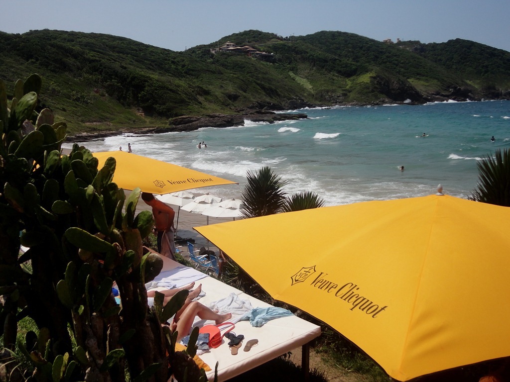 Este é o visual do bar ROCKA na PRAIA BRAVA – uma cor de mar azul indescritível, entre montanhas verdes fechando a praia. O ROCKA tem o patrocínio da VEUVE CLICQUOT e por isso, os ombrellones e as taças são amarelinhas. Lounge super confortável com colchões, almofadões, boa música e petiscos de primeira. No ano passado, aqui no blog, eu dei essa dica e muita gente foi e me deu retorno. É i-m-p-e-r-d-í-v-e-l !