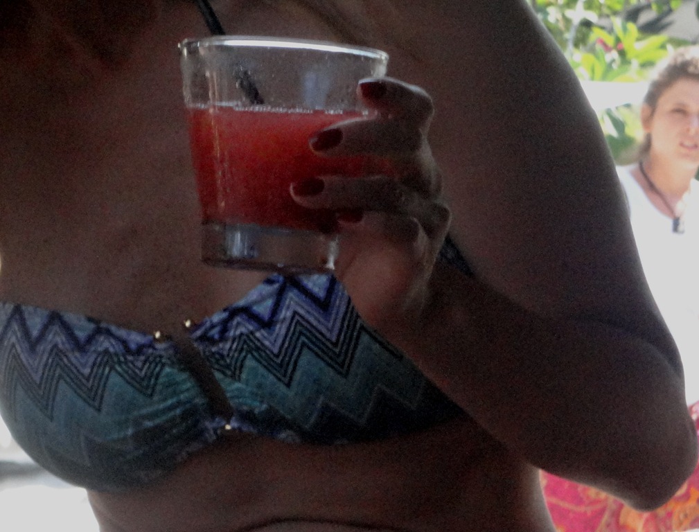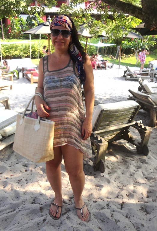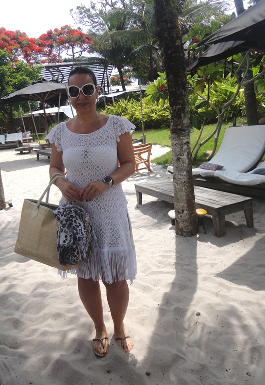 Nessa praia, tartarugas nadam perto das pedras e não se importam com a aproximação. Como era a praia da nossa casa, bem pertinho mesmo, dá-lhe um biquini branco ( amo branco em praia!!!! ) com um brinco branco tambem. E uma canga … e só ! Não é lugar para passar o dia pela pouca infra , mas a praia merece uma foto, com certeza !!!!