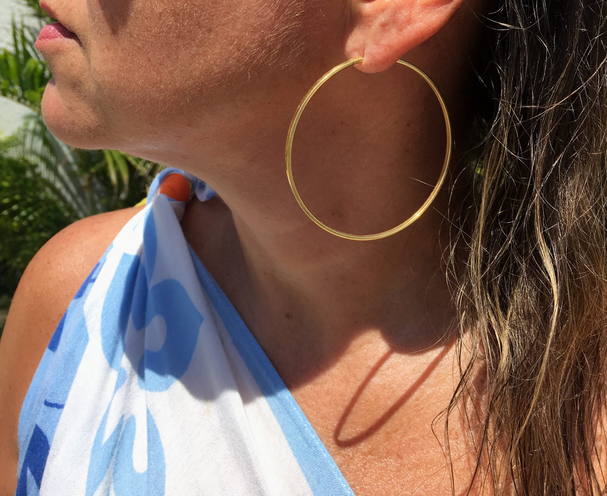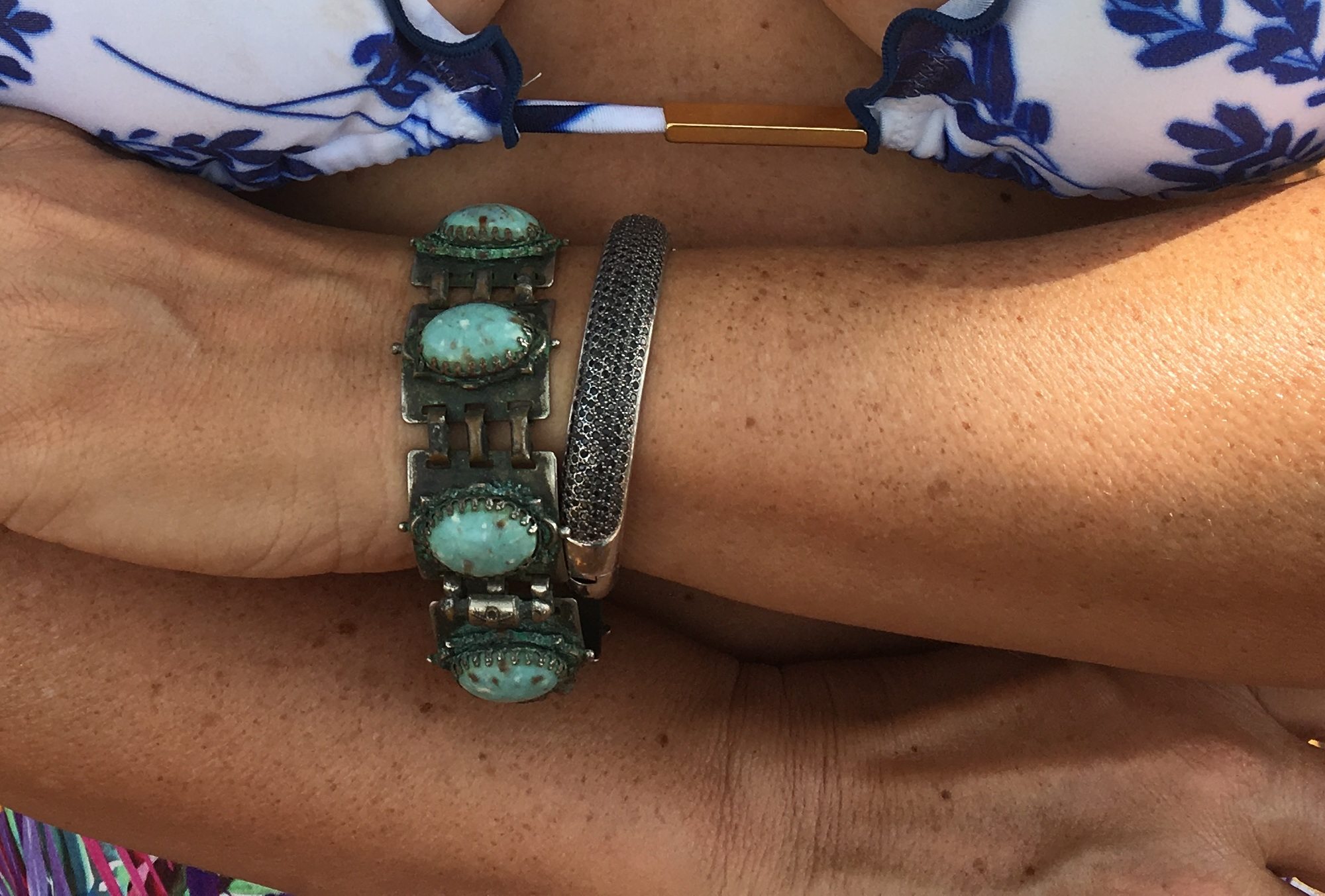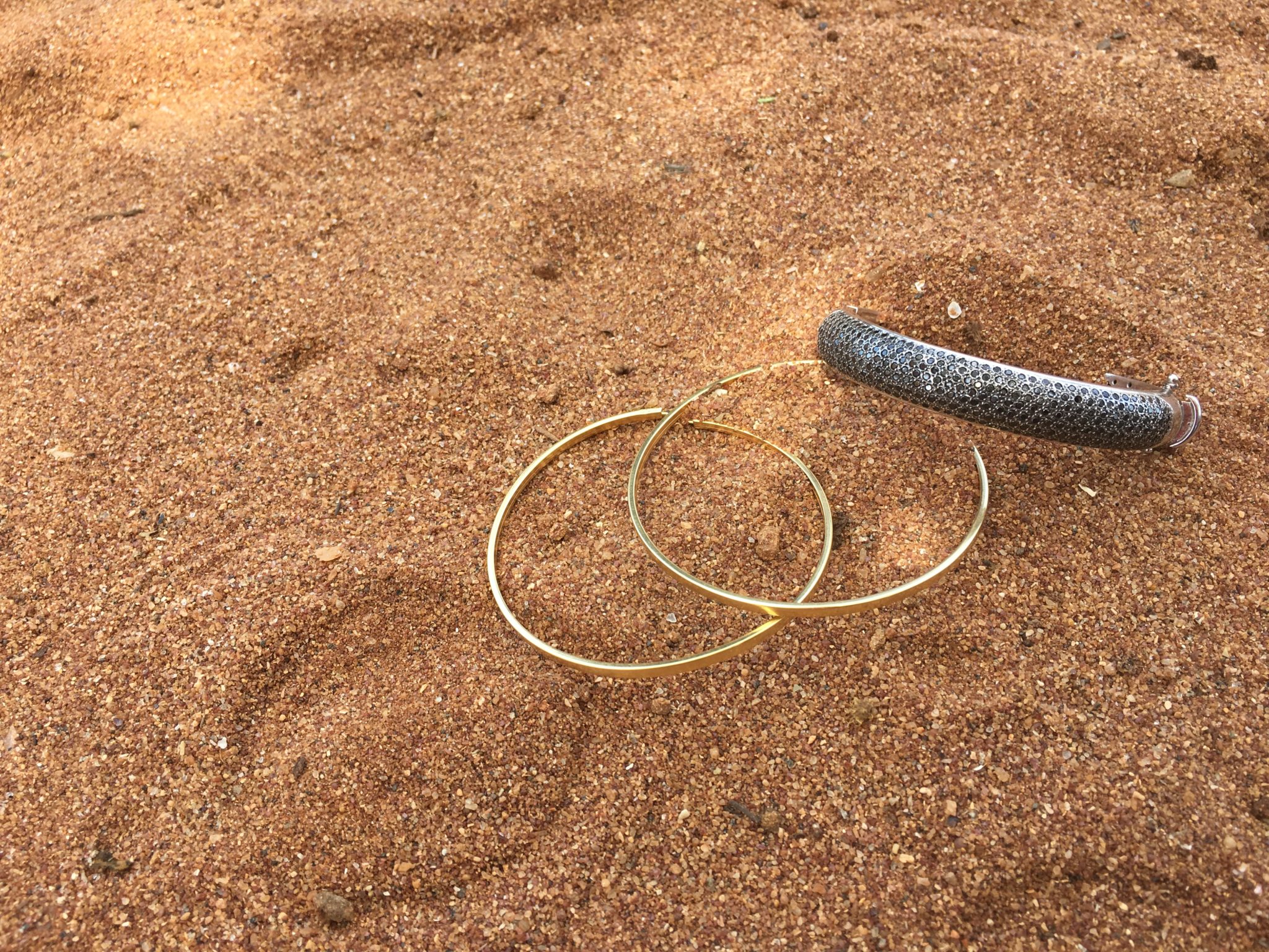 Argola de ouro + Bracelete de brilhantes, o mesmo abaixo no look abaixo, com prata antiga