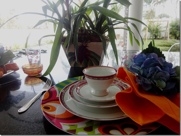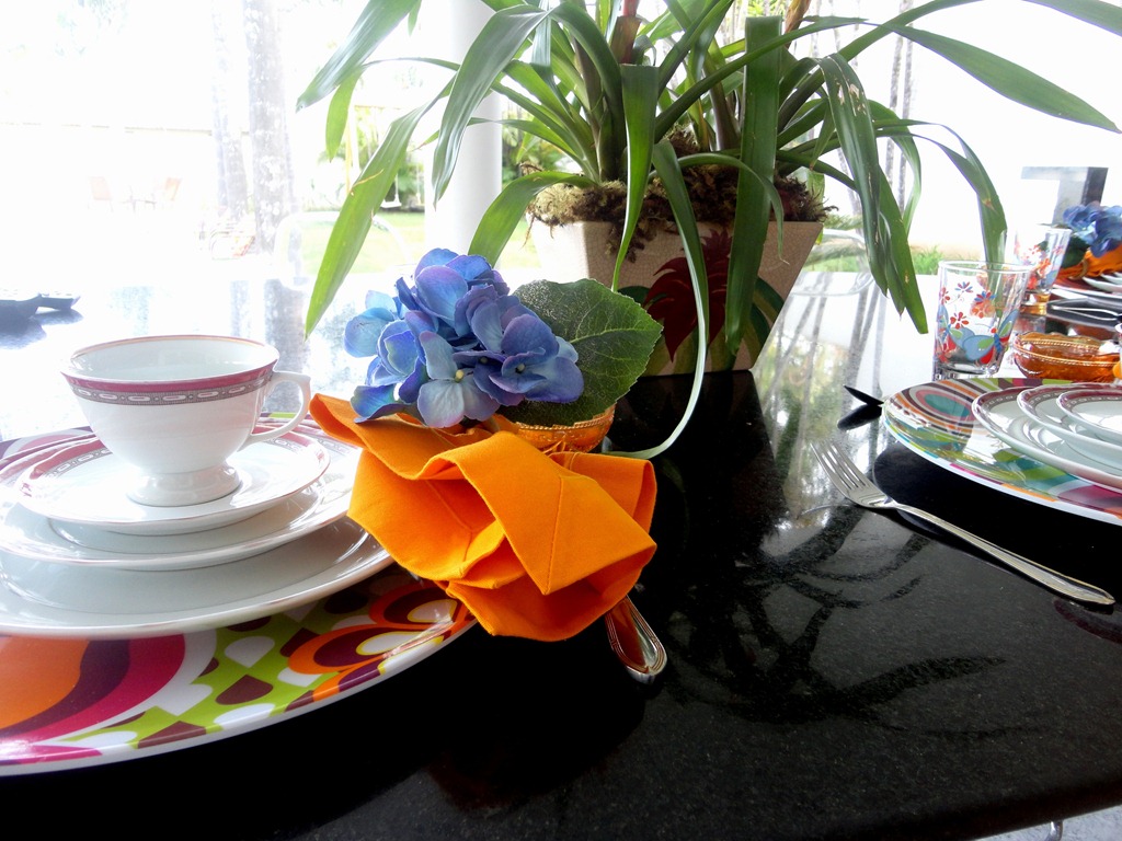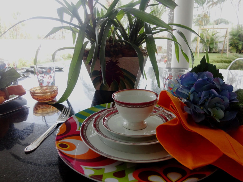 A minha mesa de café da manhã foi colorida, mas sem “ super-produção” . Sousplats da IMAGINARIUM , porta-guardanapos da VILA VITINI e guardanapos da LA VILLE.