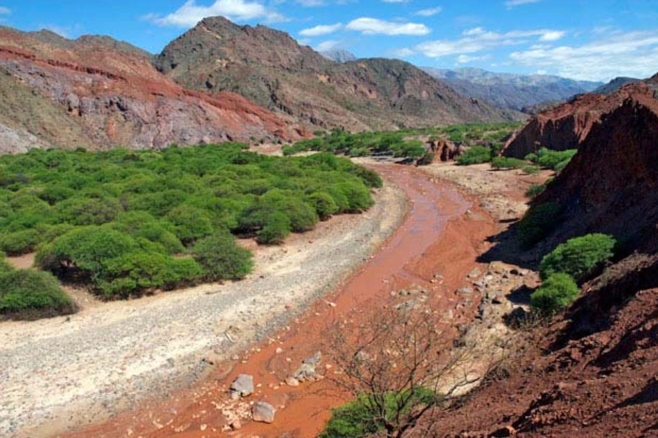 A paisagem da QUEBRADA DE LAS CONCHAS é deslumbrante, com um relevo esculpido pelas ações tectônicas e erosões durante 2 milhões de anos. Aliás, a estrada segue o leito do rio, que formou vales e desfiladeiros às margens da Cordilheira dos Andes. Afinal, o rio revela abertamente onde foi buscar a cor avermelhada que o tinge: os montes são vermelhos, laranja e amarelos; a vegetação é seca, acompanhando a tendência do solo, que se vai transformando em areia.