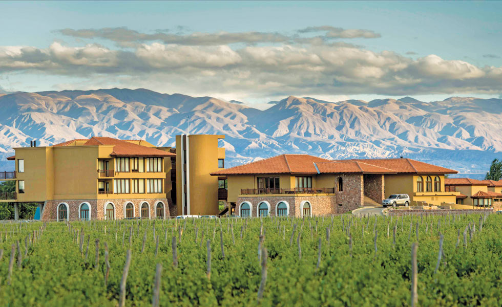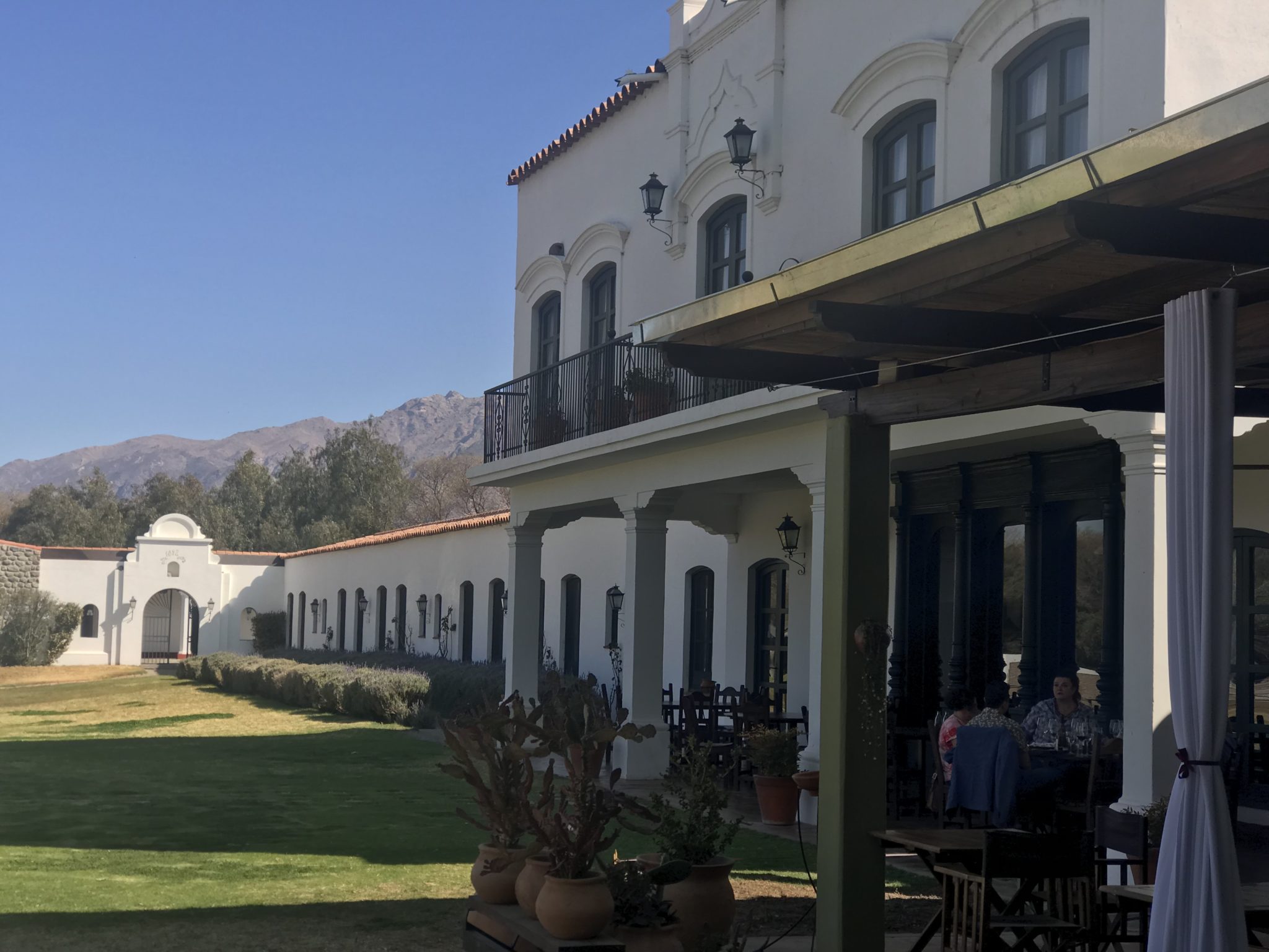 O hotel fica a 10 minutos do centro, dentro de uma propriedade de vinhedos à beira da Cordilheira dos Andes. A foto abaixo mostra o corpo principal do hotel, onde fica spa e restaurante.