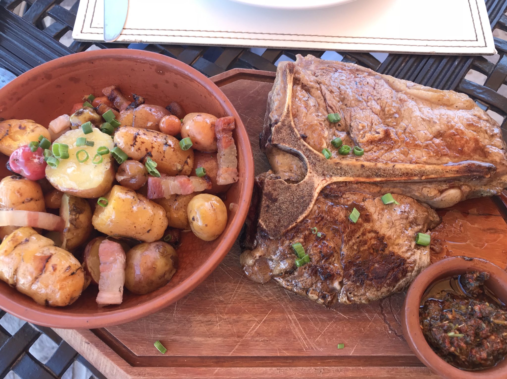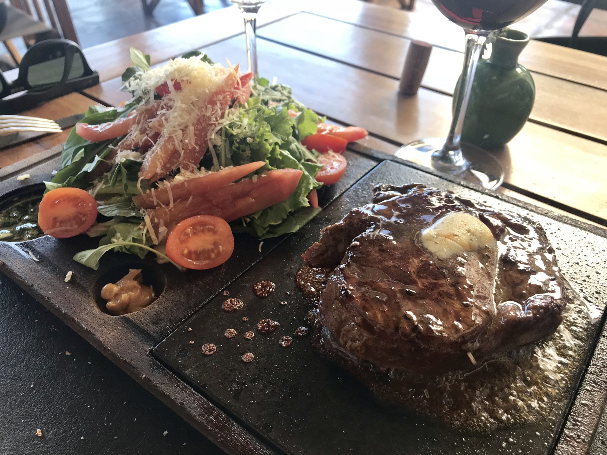 E que lugar para tomar um bom vinho!! Esse é visual: deserto aos pés dos Andes. A comida é pouco variada, pois eles não têm grandes variedades de ingredientes disponíveis. Empanadas, queijo de cabra, carnes ( os famosos cortes argentinos), batatas, milho, quinoa. O vinho é o branco Torrontés e os tintos Malbec ou Cabernet, ambos muito bons.