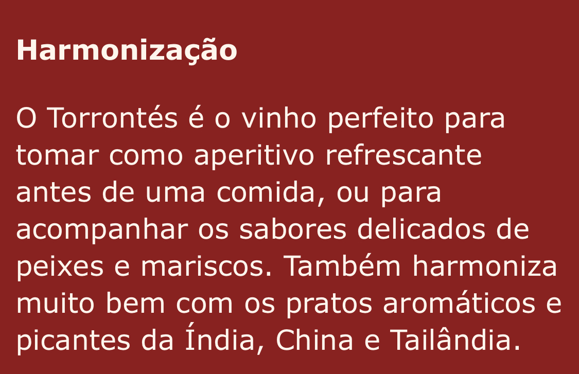 Aqui é cultivado entre os 1700 e 2400 metros de altitude, onde a exposição solar é maior e a temperatura mais baixa, enquanto as cepas francesas dos tintos ficam, geralmente, nos terrenos mais baixos. Para além do Torrontés produz-se Malbec, Cabernet-Sauvignon, Merlot e Tannat. Todos partilham os solos ligeiramente salinos, o sol quase infalível e o ar puro que faz de Cafayate um oásis em terra semidesértica.