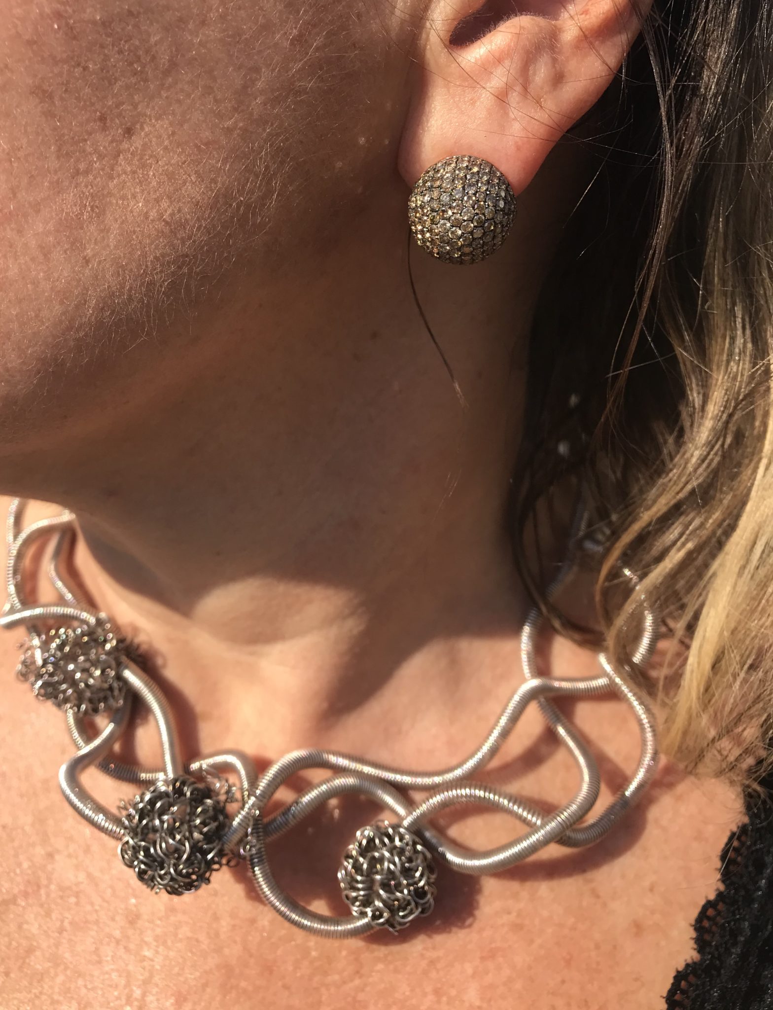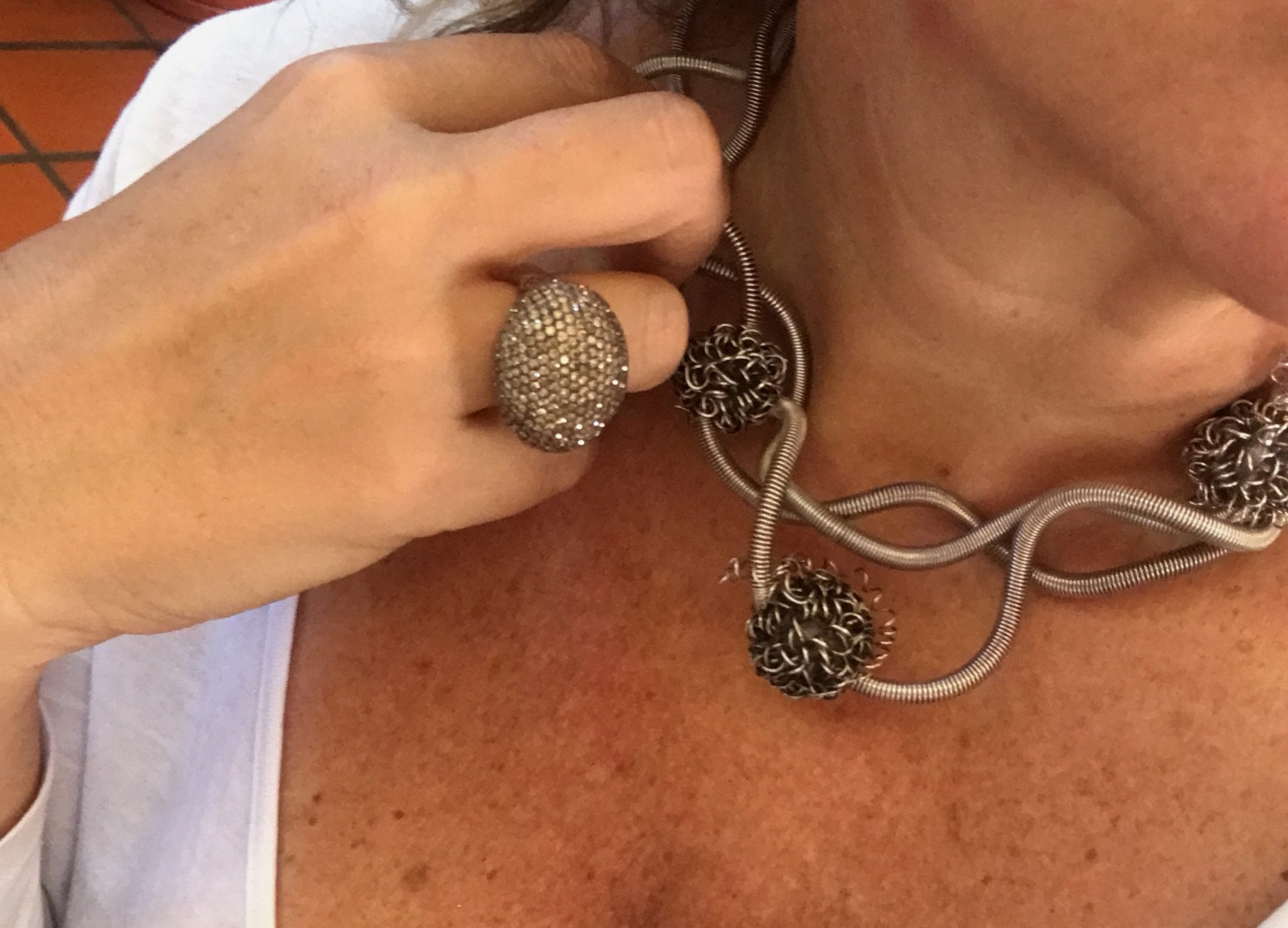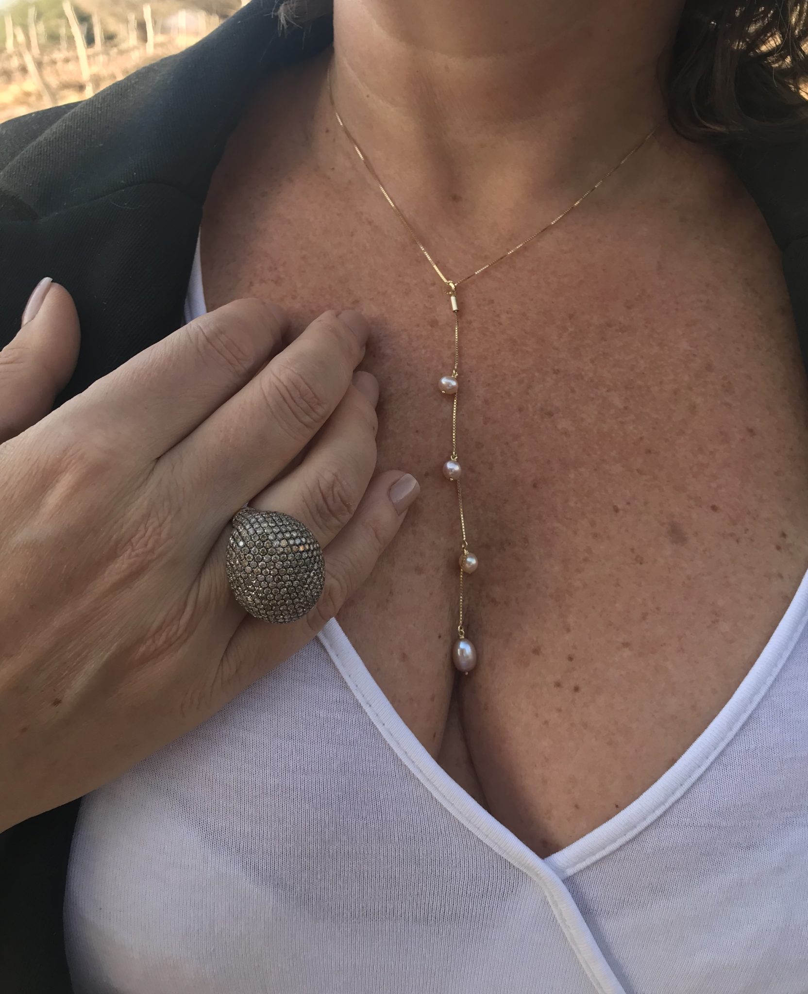 Viajei de camiseta de alça e casaco, pois a variação é de 15 graus em um mesmo dia. Saí com frio de Buenos Aires, entretanto, na estrada já pegamos um calor infernal, mesmo ainda sendo inverno. Esse brinco de brilhantes brown joga super bem com esse colar em aço, tanto pela forma, quanto pela cor, vocês não acham?