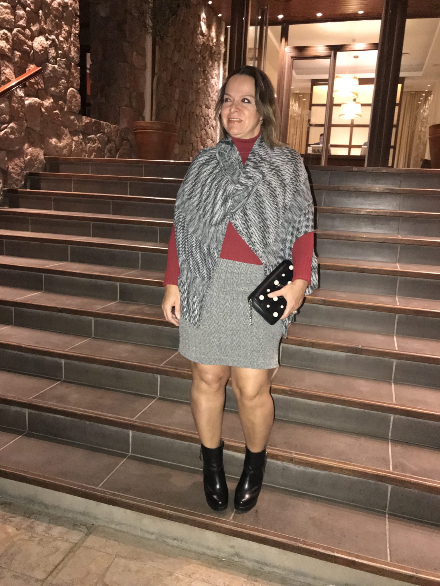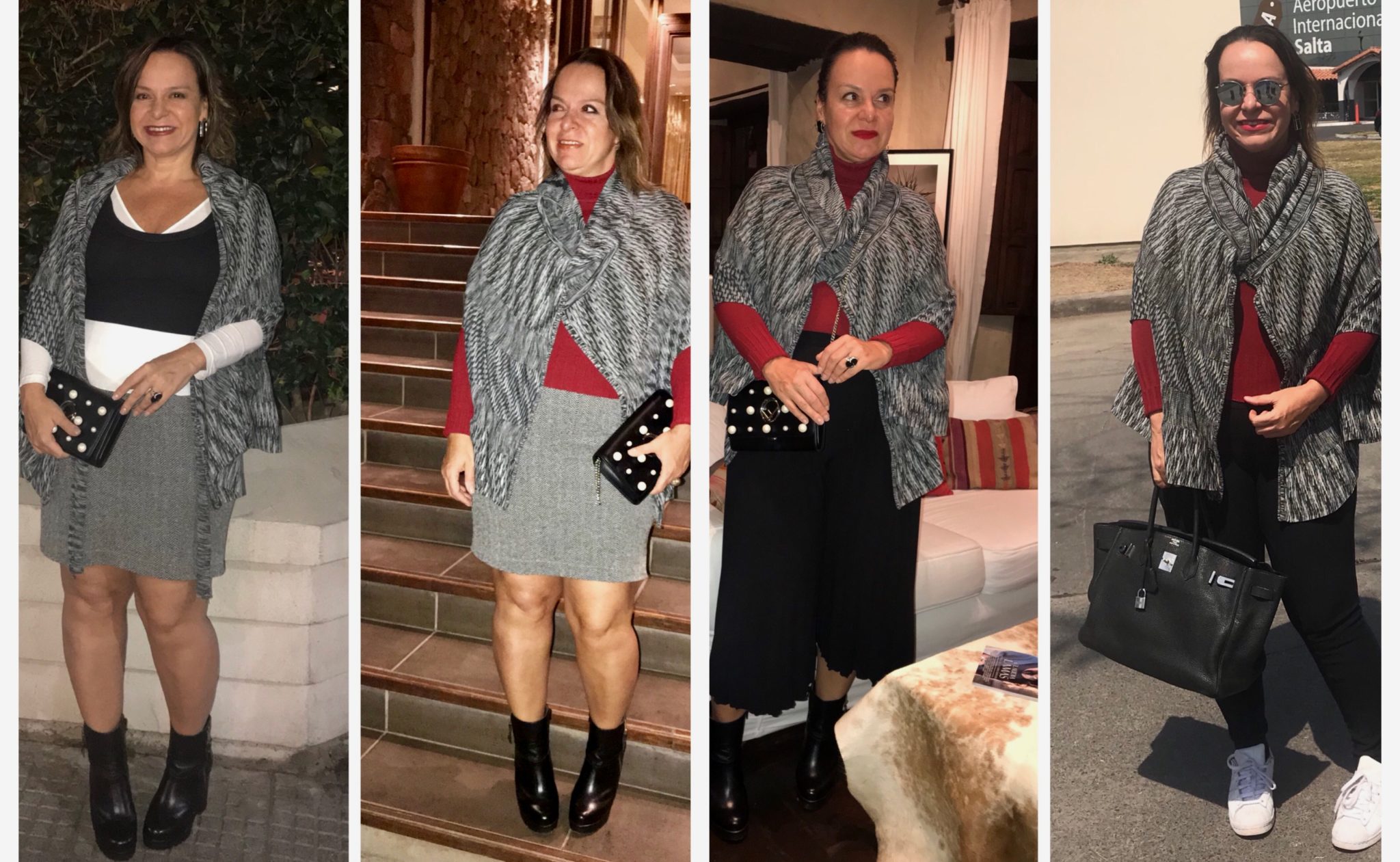 Esse poncho eu usei 4 vezes nos 11 dias e isso é muito importante se pensar quando está montando uma mala para esse tipo de viagem, com 2 noites em cada hotel.