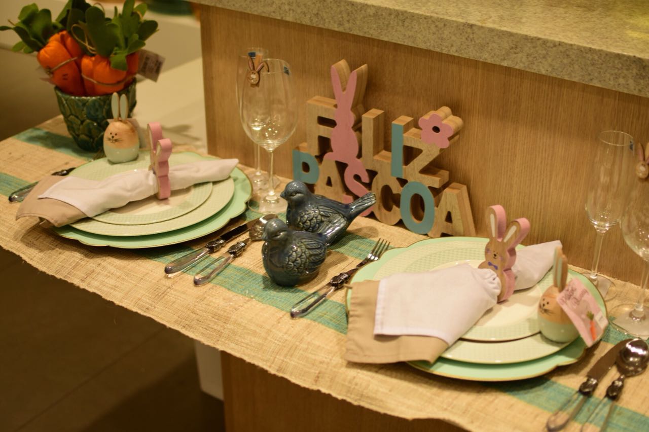 Tive a idéia de dar uma cara de Páscoa a essa mesa, pois vi coisas muito lindas por lá. Os tons pastéis da linha Páscoa casariam lindamente com o que estava já montado.
