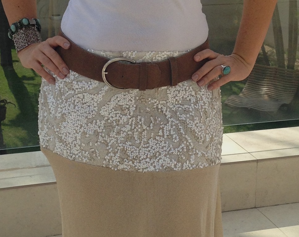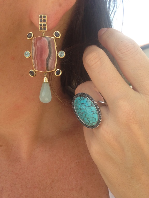 Aonde entra a jóia? No look pra receber! Uma premissa: ser despretensioso, casual e confortável para um dia longo – SAIA MARES – top e cinto acervo – spadrilles TOMMY HILFINGER – pulseiras em prata e turquesa suuper antigas – anel de turquesa e um brinco colorido que são A C-A-R-A do verão!