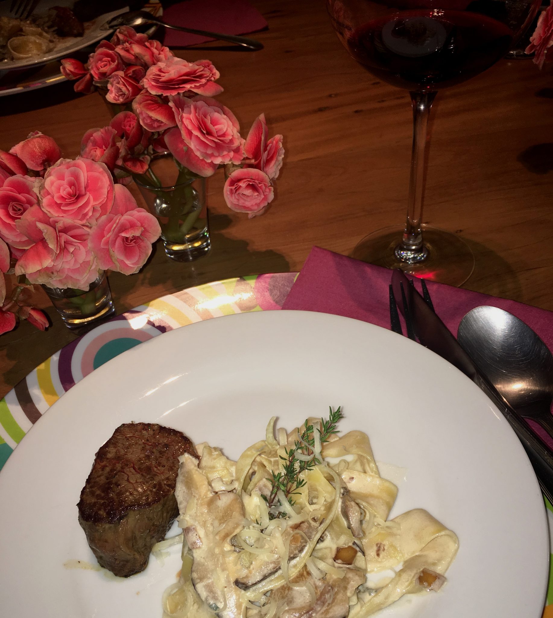 PAPPARDELLE COM GORGONZOLA, SHITAKE, NOZES E TIRAS DE MIGNON