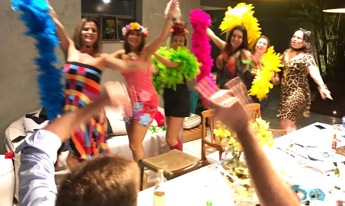 Entretanto, se você quiser ver um pouco da alegria da nossa turma no Carnaval, clique AQUI . Todo ano programamos um encontro de amigos com espírito criativo e alegre e além disso, todos se jogam na criatividade. Todo mundo topa se caracterizar com suas próprias roupas, usando apenas adereços e suas próprias idéias. Ninguém compra fantasia, nem vai ao salão.