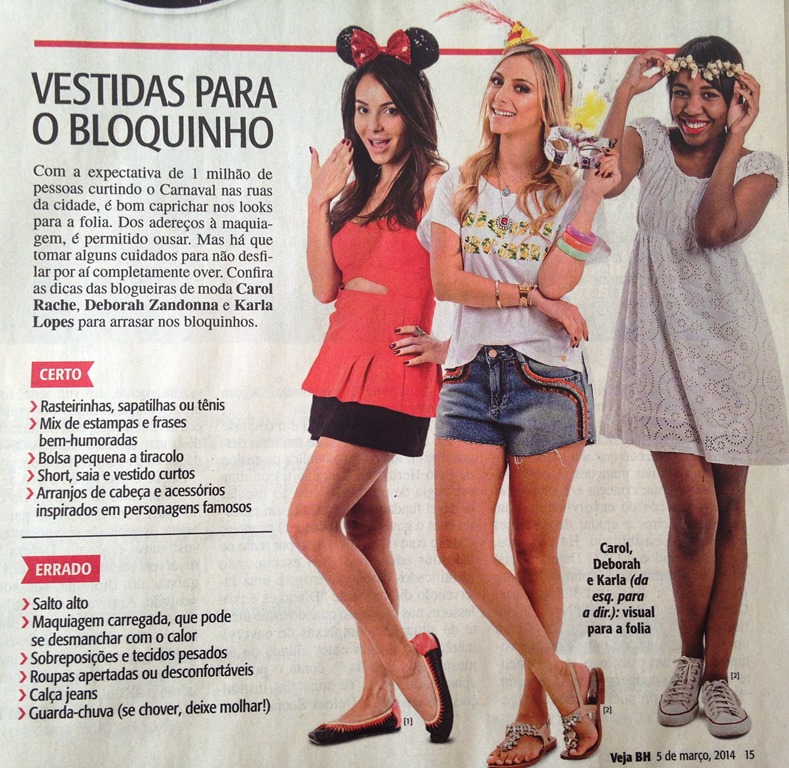 A VEJA BH deu essas dicas de como se vestir para os blocos , e eu bati de vestidão TAHARI, bolsa cruzadinha DIOR, tiarinha de Londres e havaianas mesmo no pé.